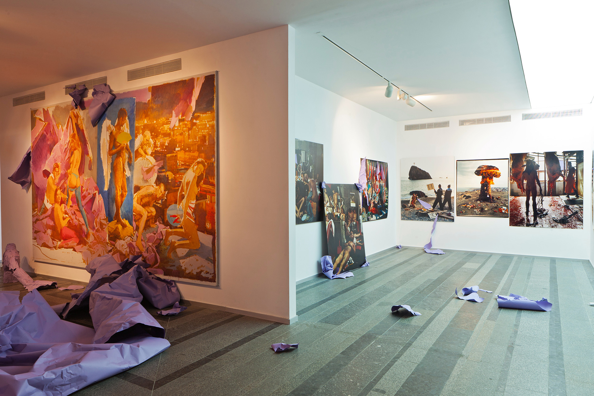 The new installation by Savadov specially produced for the PAC-UA 2 refers with its title to the “Blow Up” film (1966) by Michelangelo Antonioni. Savadov’s universe at the PinchukArtCentre is a collage of photographs he took in earlier years, including “Book of the Dead”, new created paintings with as central theme sexuality and the continuous endeavour of discovering a sense of artistic freedom.