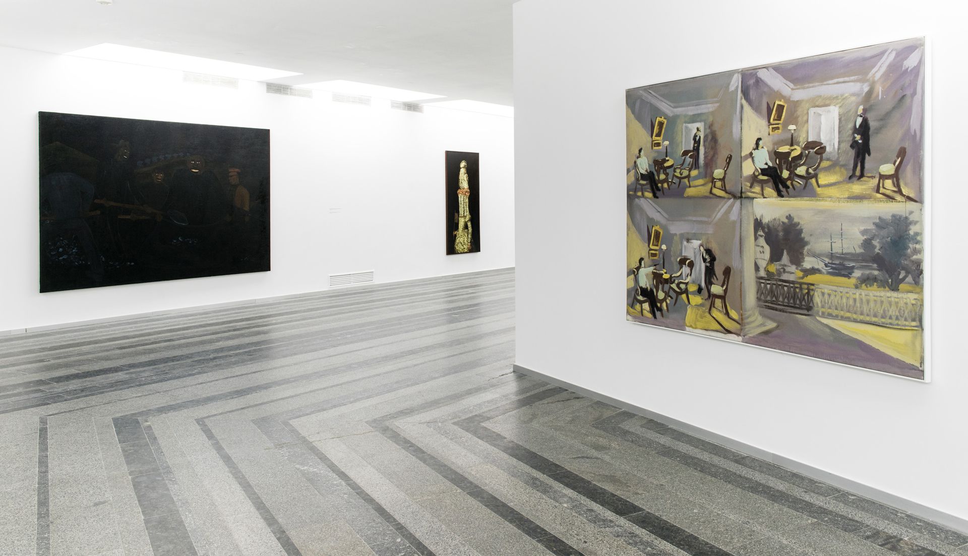 The exhibition also shows artists’ attempt to go beyond a painting. Thus, the Institution of Unstable Thoughts (O. Hnylytskyi and L. Zajac) by means of simple visual illusions provides “analogue” animated picture that unfolds in real time and space in front of the audience. In the early 2000s V. Tsagolov returns to the format of the big picture, “introducing” in it his own performative experience of the 90s.