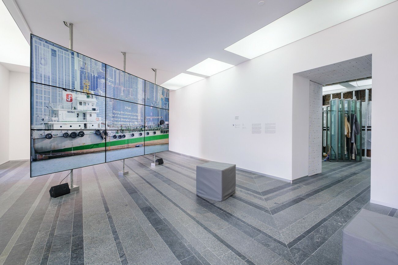 The key work in the exposition is the second chapter of an ongoing film project that maps the hundred-year history of the development of the textile industry and its many afterlives within the Greater China region. Each of the three chapters, namely Lineage, Lining, and Landing, is situated around a historical turning point and examines the shifts in the conditions of labour, capital, and technology as one socio-economic system gives way to another.