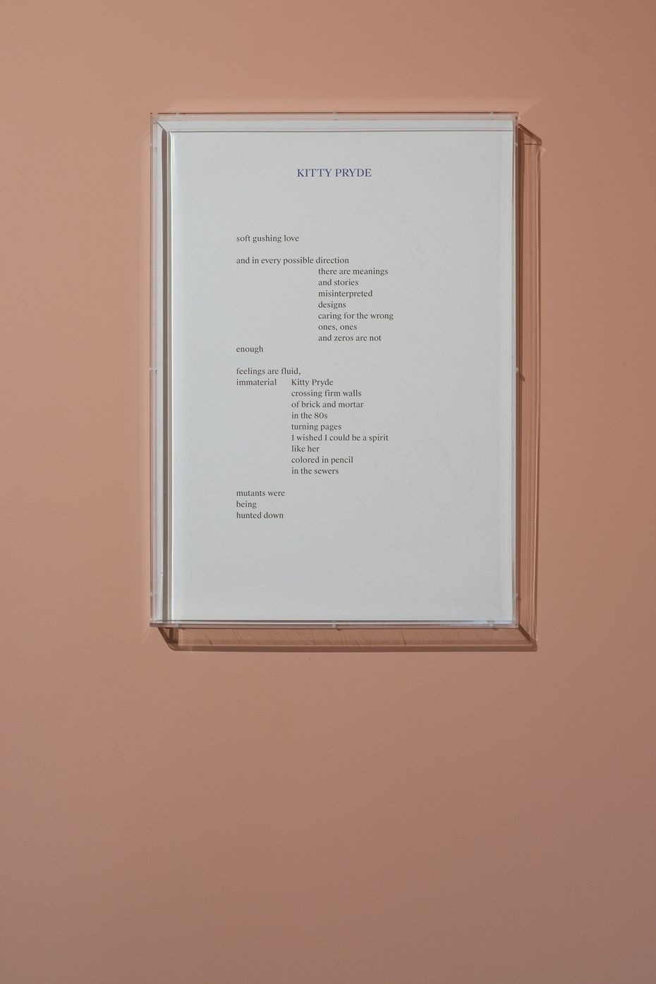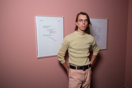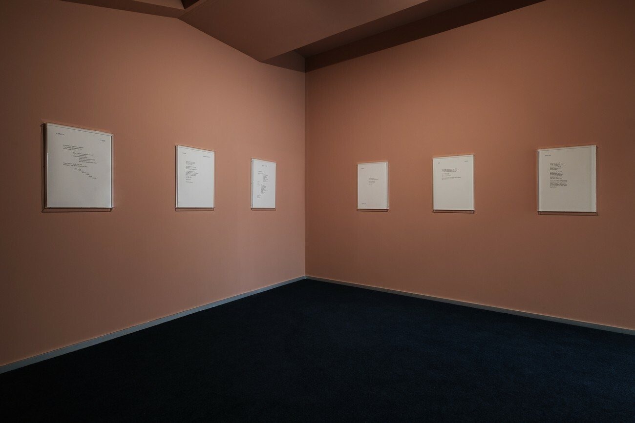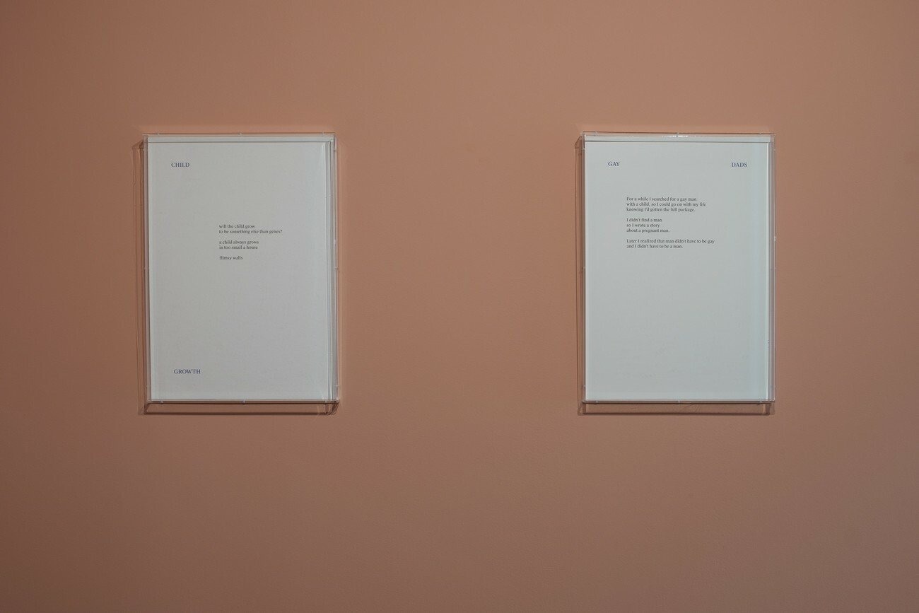 Though not a series, the exhibited poems each reflect and are built on fragility, intimacy, and exposure. As a growing practice of Neves Marques, their poetry navigates the thin line between reality and fiction, autobiography and speculation, the experiences that belong to the artist and to the people who surround them. Expressing in subtle ways the daily trappings of normativity and how they clash with the fluidity of bodies and dysphorias, they also touch upon the influence of science, technology, and popular culture on the imagination.