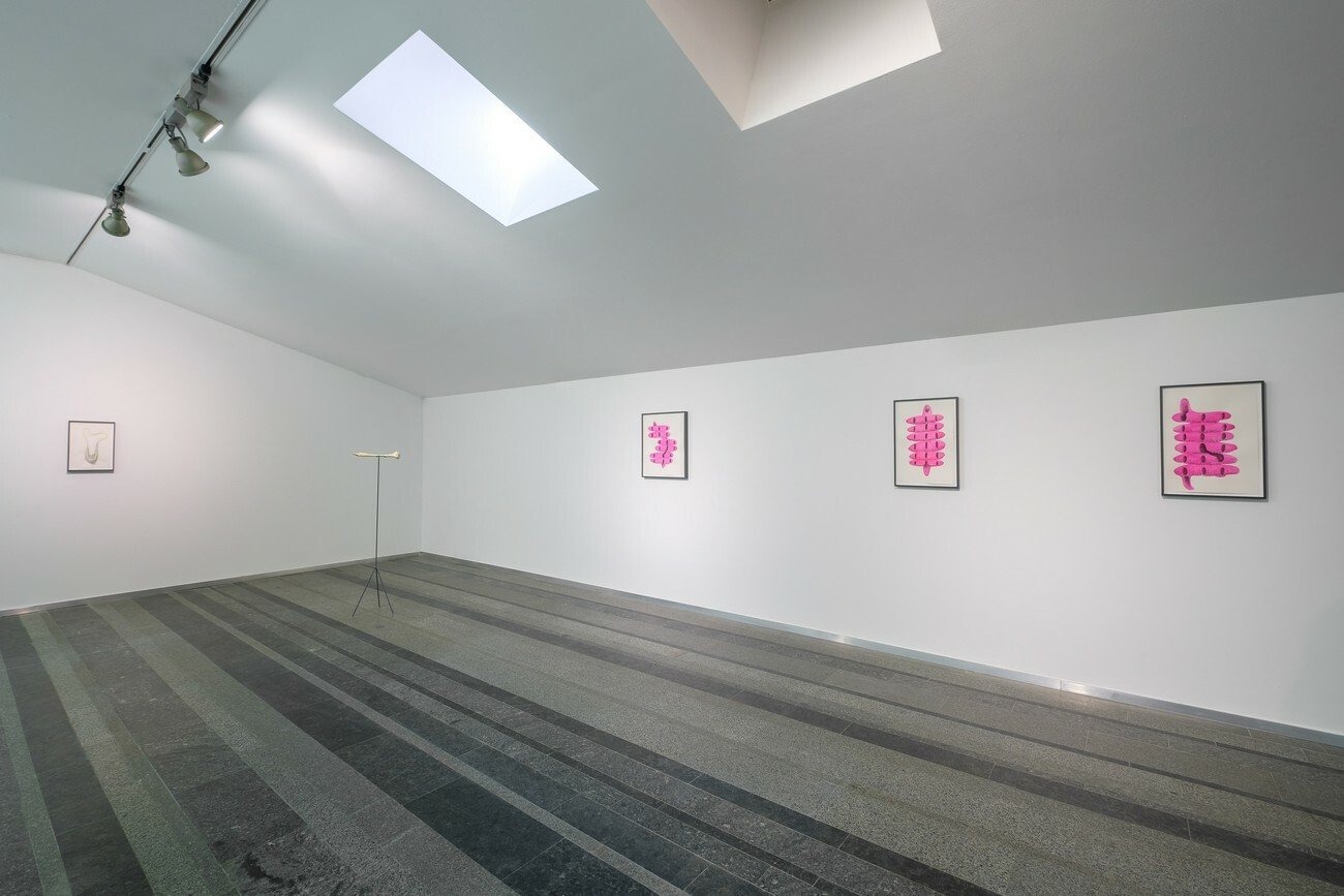 In recent years, Teresa Solar has developed large-format installations in which families of sister sculptures vary in shape and size, creating complex ecosystems of thought. She explores concepts such as insulation and immunity and develops them through a multidisciplinary production mainly focused on sculpture and drawing. Throat, pore, hatch, tongue, pipe — her pieces are populated with connotations of connectivity and flow and based on the creation of multi-layered narratives.