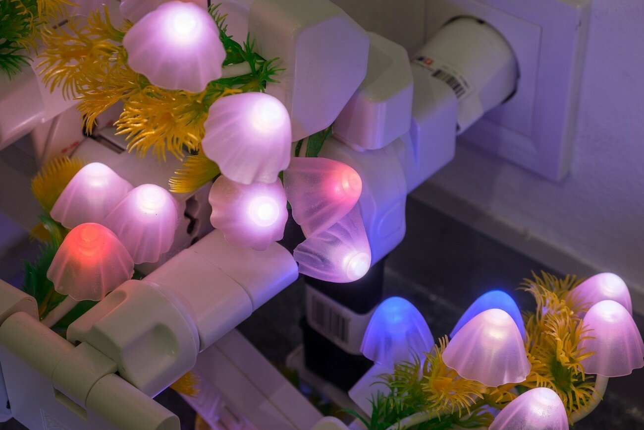 In contrast, Night Mushroom Colon becomes a specific gesture of care. Alone at night, a person switches on a lamp which somehow becomes a companion. The slight bioluminescent glow of the mushrooms produced by an electrical converter reminds us about non-human presence and the agency of multiple species.