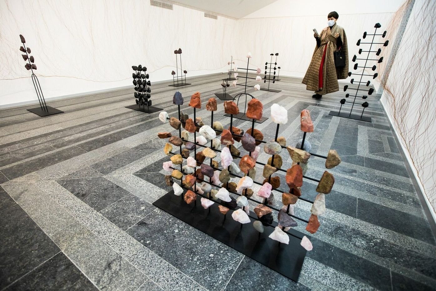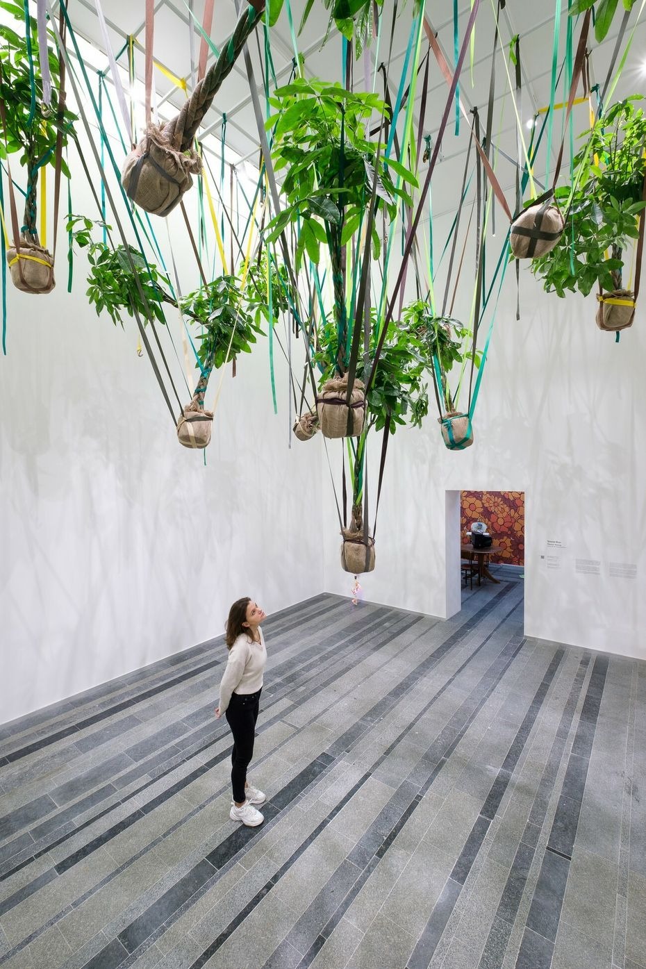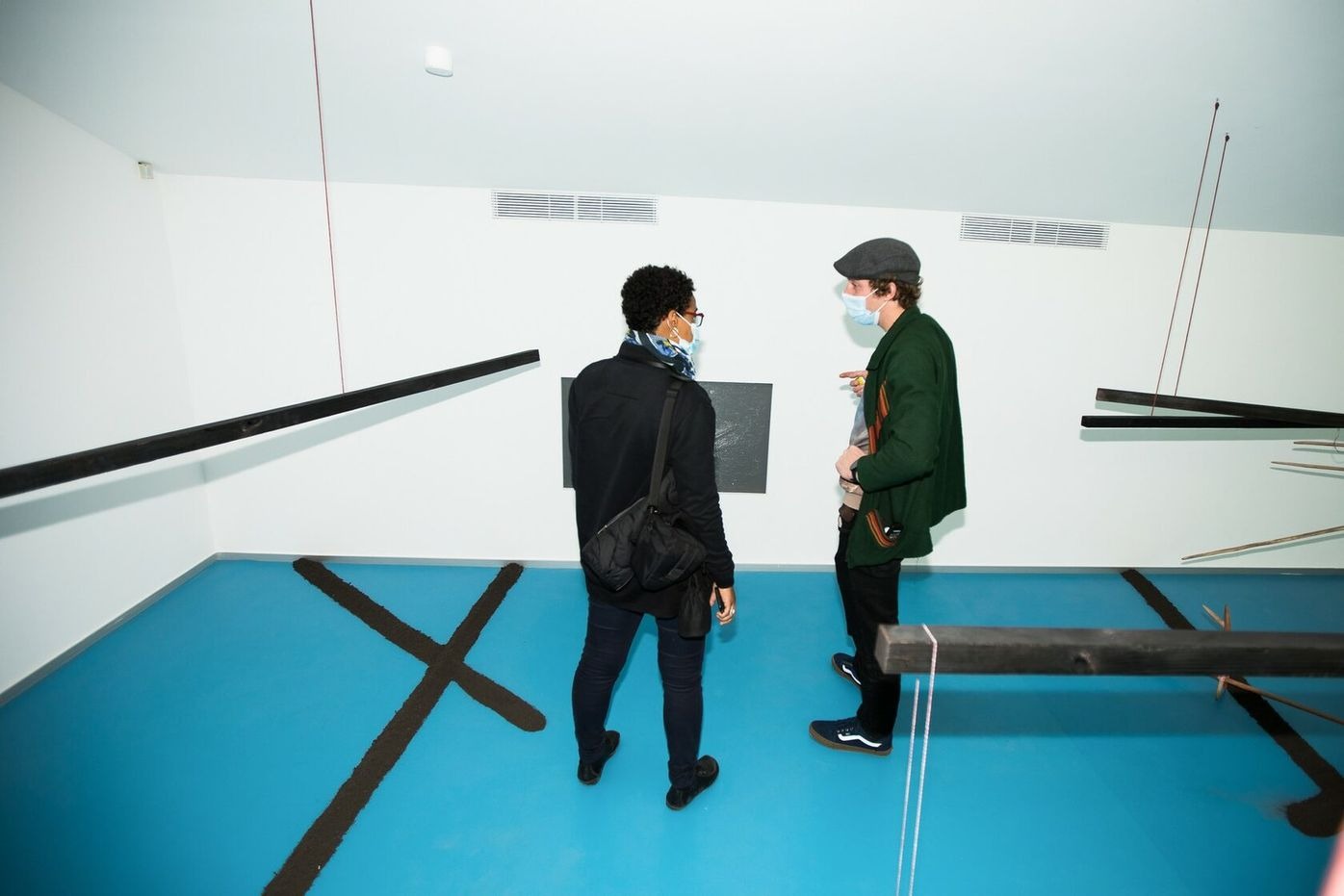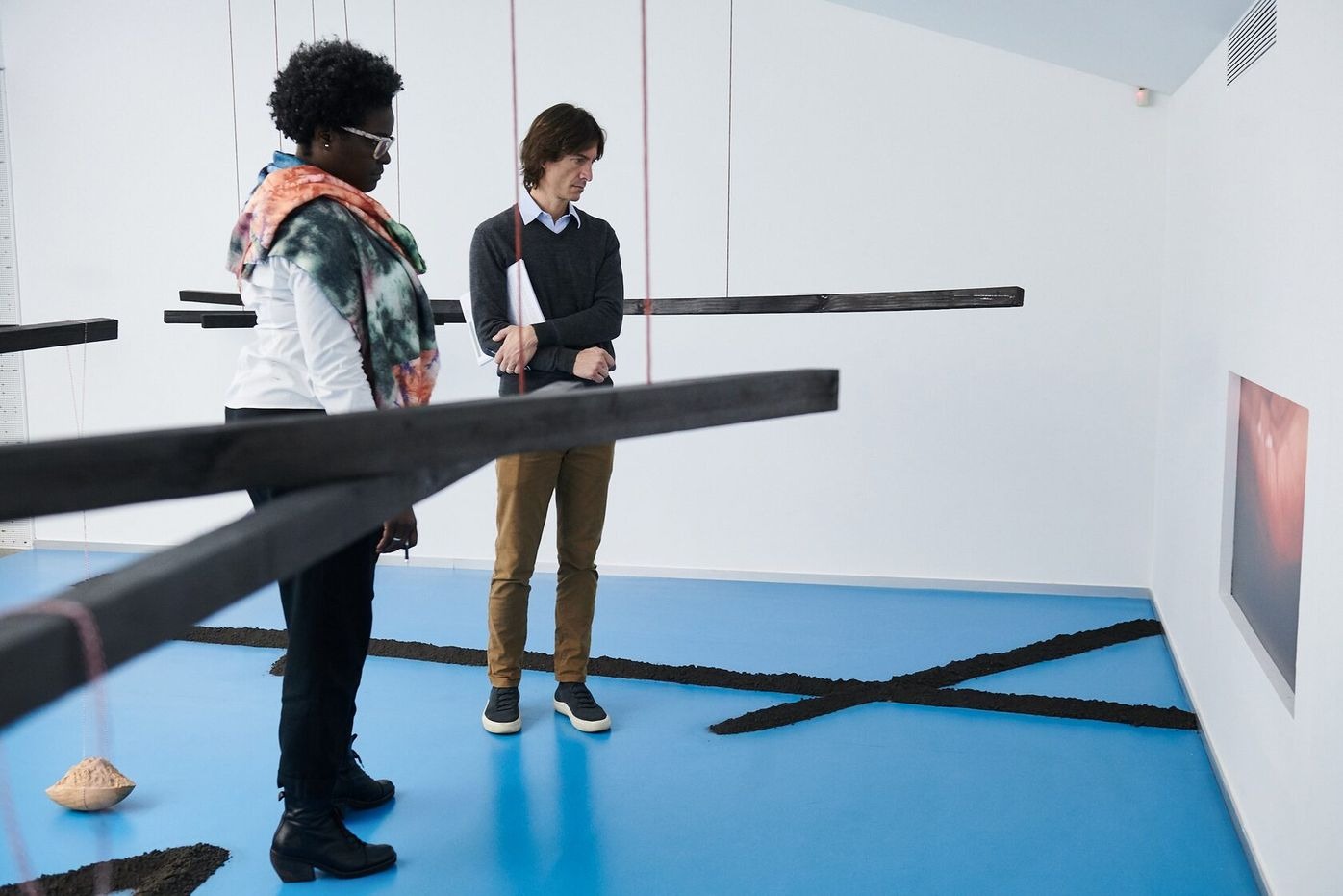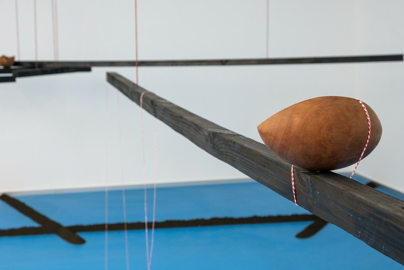 Dividing the room and forcing the viewer to walk on only certain paths, Biabiany creates small observation events and turns them into parts of the extended body, displaying different densities and rhythms, much like a breathing pattern. Both the bodies and the colonial system she observes become spaces of autonomous learning by allowing the viewer to observe their own sensations.