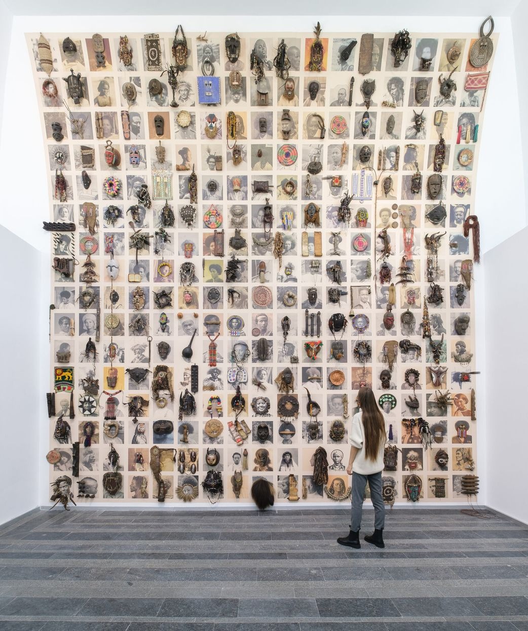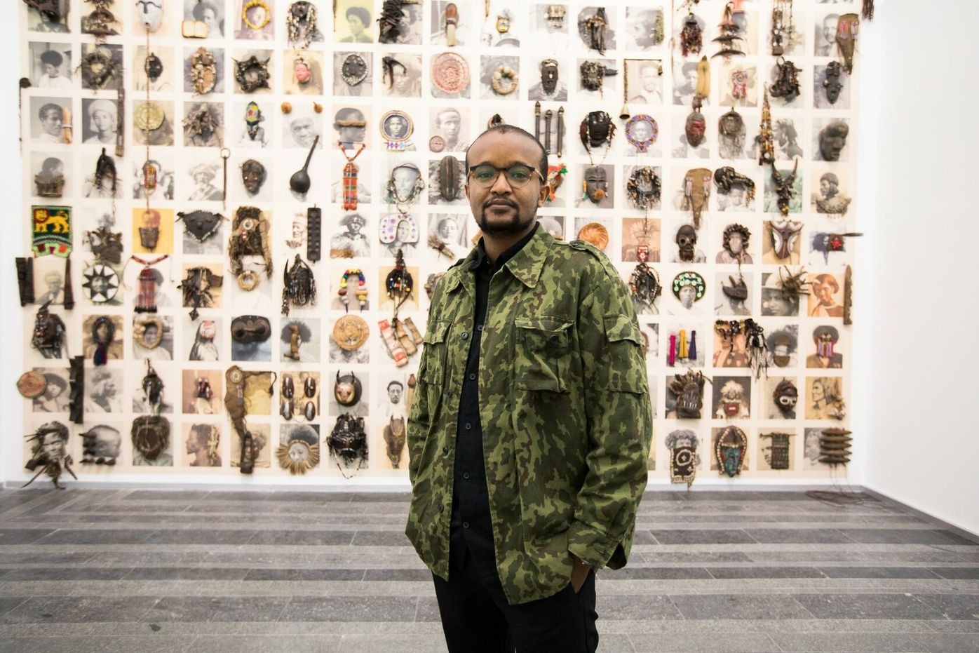In the form of a large-scale mural, the work includes archival portraits taken during the second Italo-Ethiopian war (1935-1941). Ethiopia not only survived the invasion and won the struggle, but as a result it was honored as a country that was never colonized when the pan-African movement adopted the color scheme of Ethiopia’s historical flag. Collected from the digital archives, the photographs are conspicuously missing information about the depicted figures, a feature that highlights the risk of the individuals losing connection with their context and fading from collective consciousness. The work attempts to not only capture the memory of the person and the specific historical moment, but also transform the immaterial digital representation into a physical object. The grid composition is inspired by traditional Ethiopian painting and also serves as a visual expression of interdependence and harmonious coexistence, while the scale of the work creates an immense physical presence that elevates the forgotten individuals to almost heroic status.
