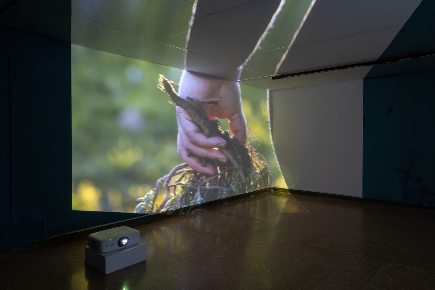“I show my virtual environments within larger physical installations, which mimic the ambience and material of the digital worlds. I do not see my work as purely digital, but as installations of landscapes where organic materials from the past meet the present, in physical and virtual forms. I am interested in how organic materials and infrastructures weave into our lives, influencing how we sense and imagine our relationships to the world.”