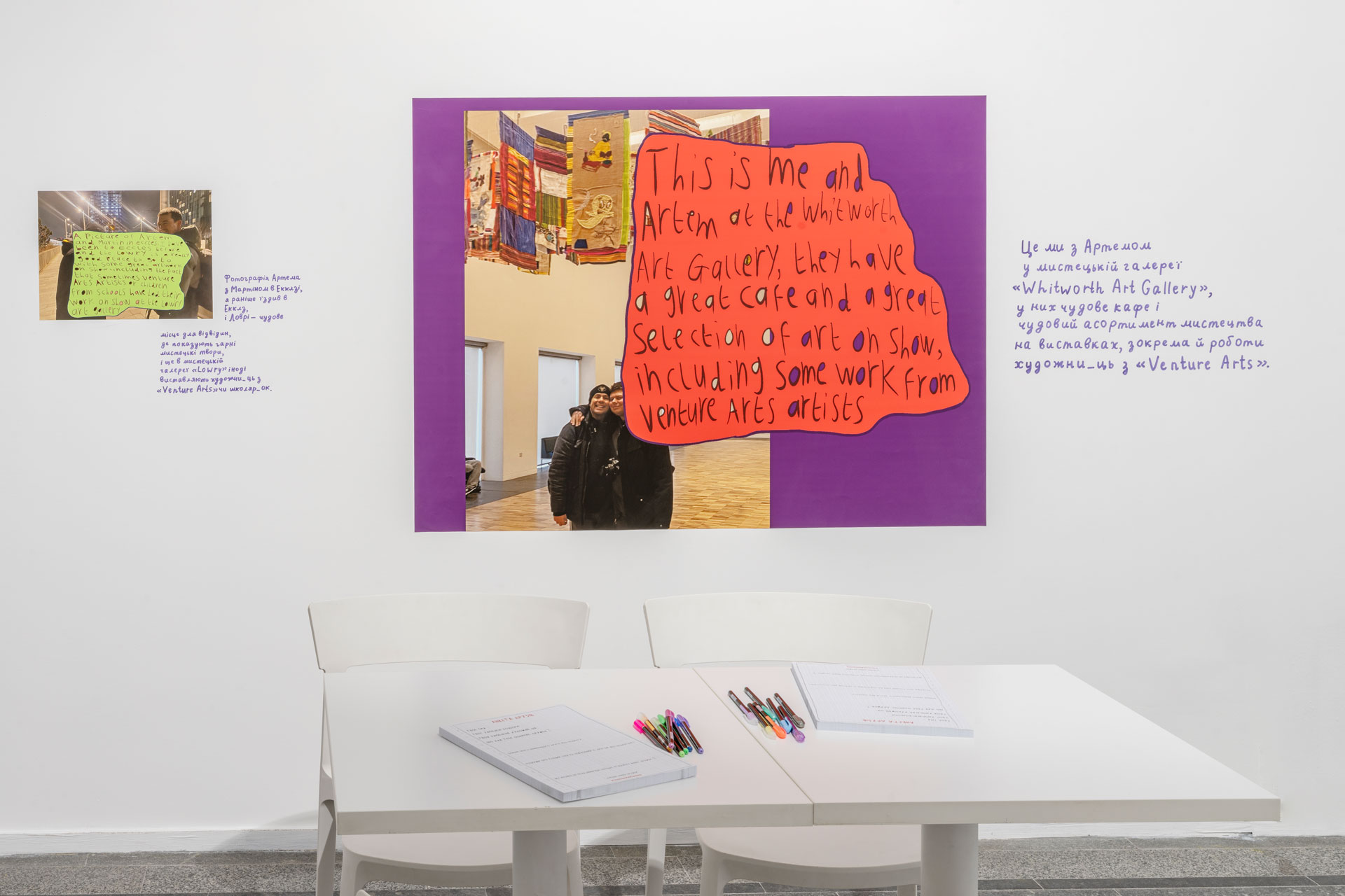 The two met in February when Artem came to Manchester for a two-week residency at Venture Arts. Together they walked around the city, visited cultural institutions and shared their gastronomic preferences. Although Liam does not speak Ukrainian at all and Artem knows only a few English phrases, they quickly found common ground in the language of art.