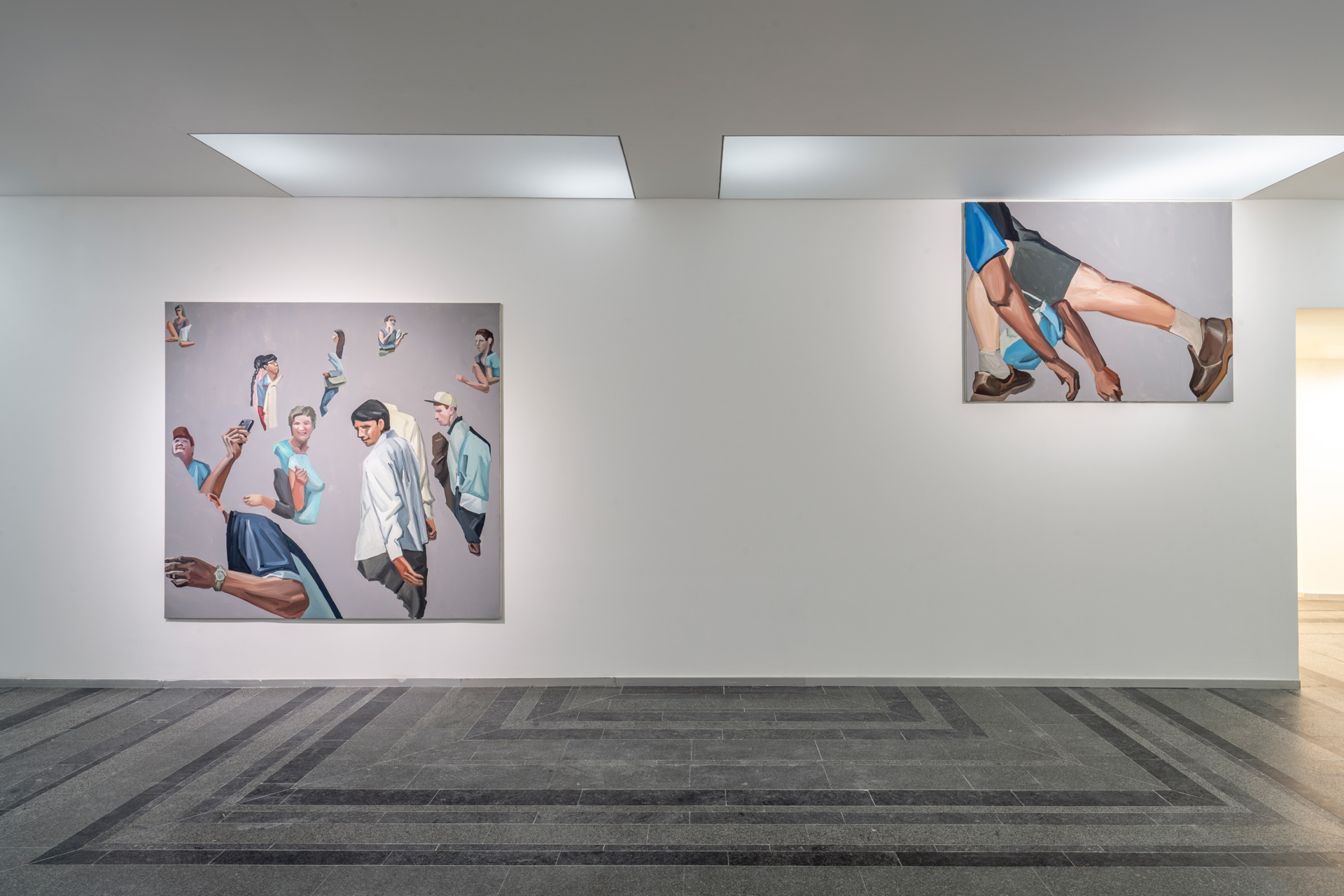 The Mixed Feelings series can be viewed today as a portrait of a mutilated society with blank spaces to represent its losses. However, works created as far back as 2013 seem to illustrate how the public felt on the eve of fundamental change. The crowd and the body fall into pieces and reassemble into new entities. Thus, the works embody one of the key themes in Khomenko’s artistic practice, which the viewer encounters throughout the exhibition. The artist deconstructs and disassembles the human body and uses its components to create the composition. The body is used in the same way as the other elements of the image, like the gaps that fill the canvas.