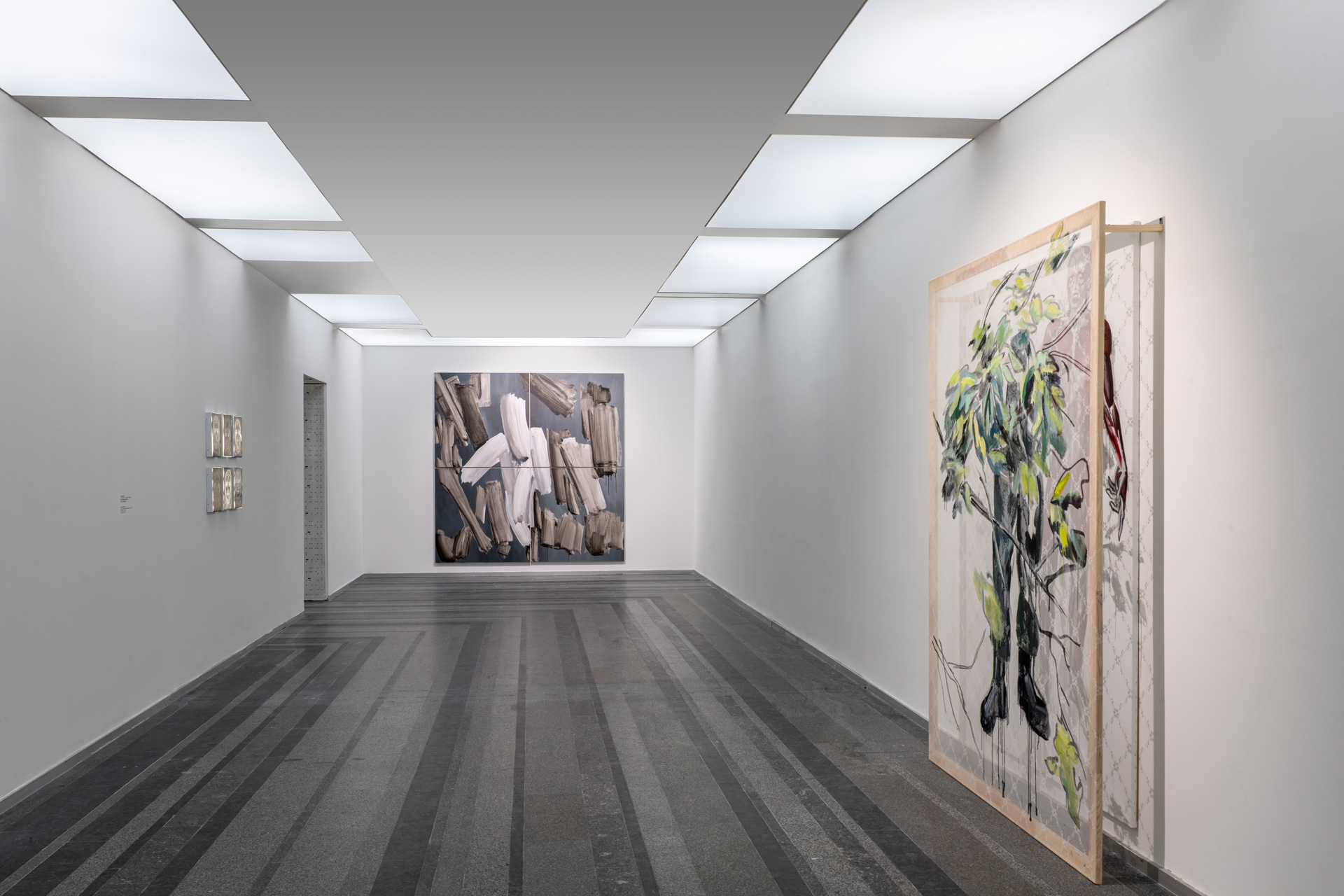 Khomenko is driven by her inner urgency of challenging the medium of painting itself as well as the urgency of her subject matter, the lived realities of war, protest and friendship throughout the last 25 years in Ukraine. What began as an engagement with Ukraine’s collective history culminates in a rethinking of what painting can be. Khomenko is not confined by surface or mere representation. Her work transcends the given canvas, becoming a performance of lived experiences. Her work is both testimony and experiment, it is painting as well as sculpture. It speaks to the fragility of the human body while empowering a collective agency through her critical reflection of Ukraine as a space, a country and a society.