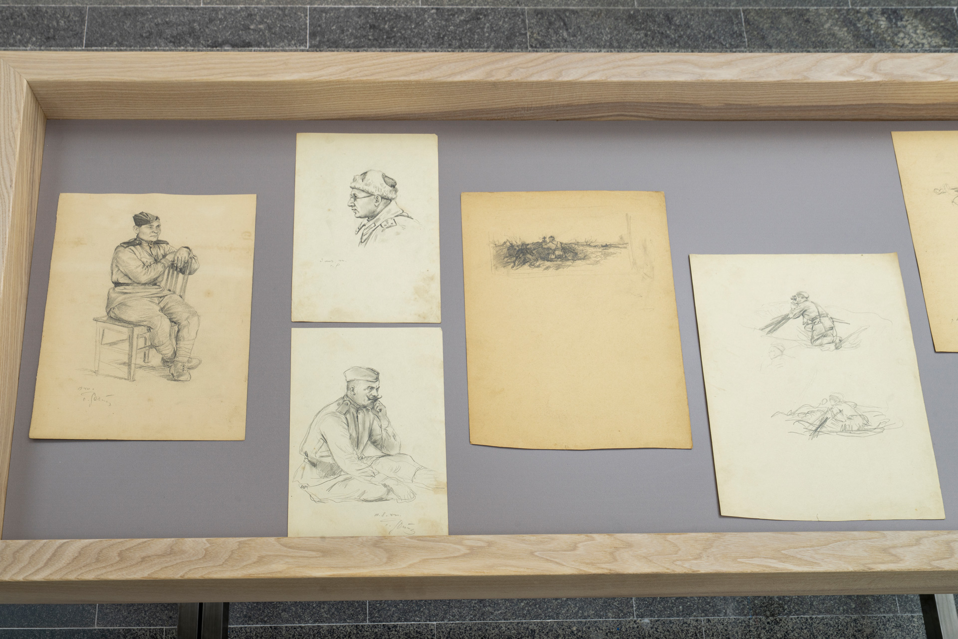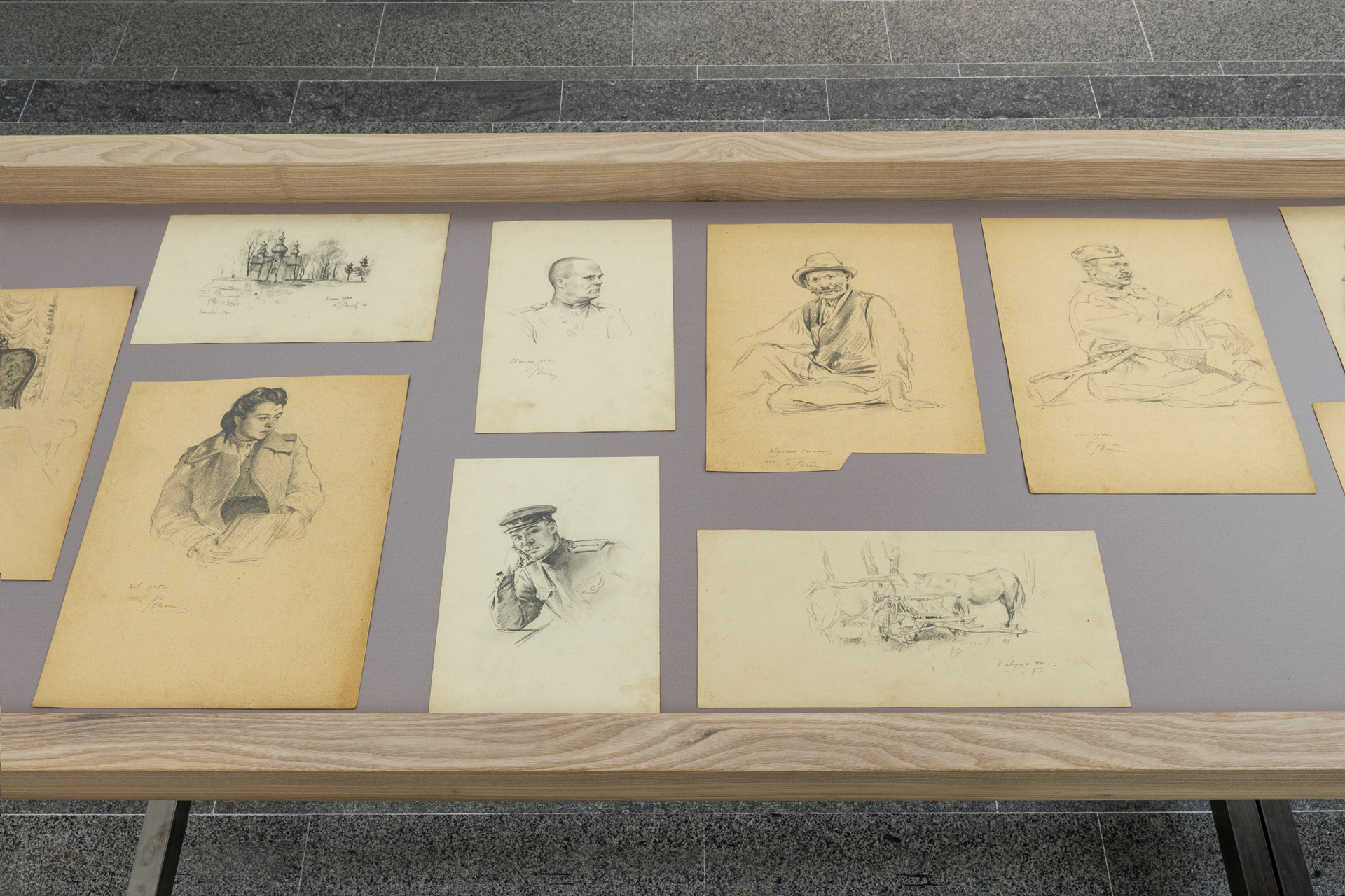 At the same time, the sketches by Stepan Repin, a World War II veteran and the artist’s grandfather, directly reflect the experience of a participant in the events. These hastily made drawings served as a way to record what he personally saw and lived through. In contrast, epic socialist realist paintings were created several years after the war, since their imagery was carefully constructed in line with ideological demands. Thus, diary sketches are evidence of historical events, providing a connection to the past that is not mediated by Soviet ideology.