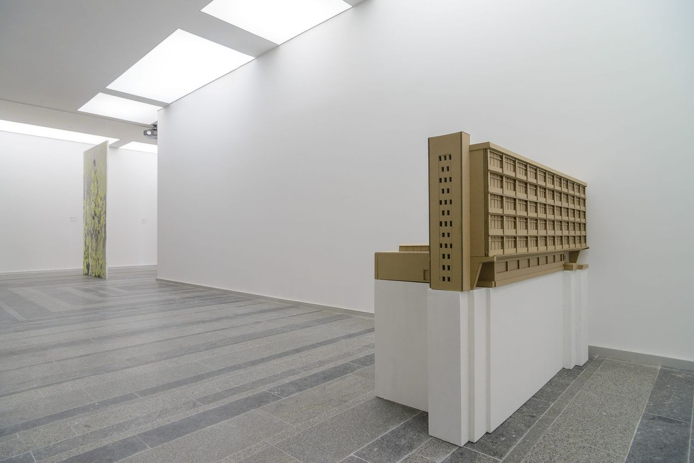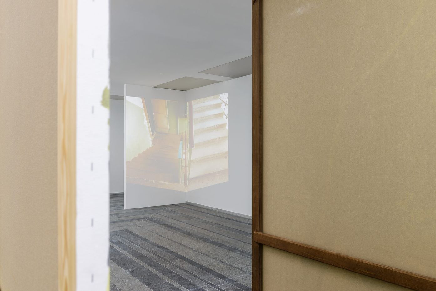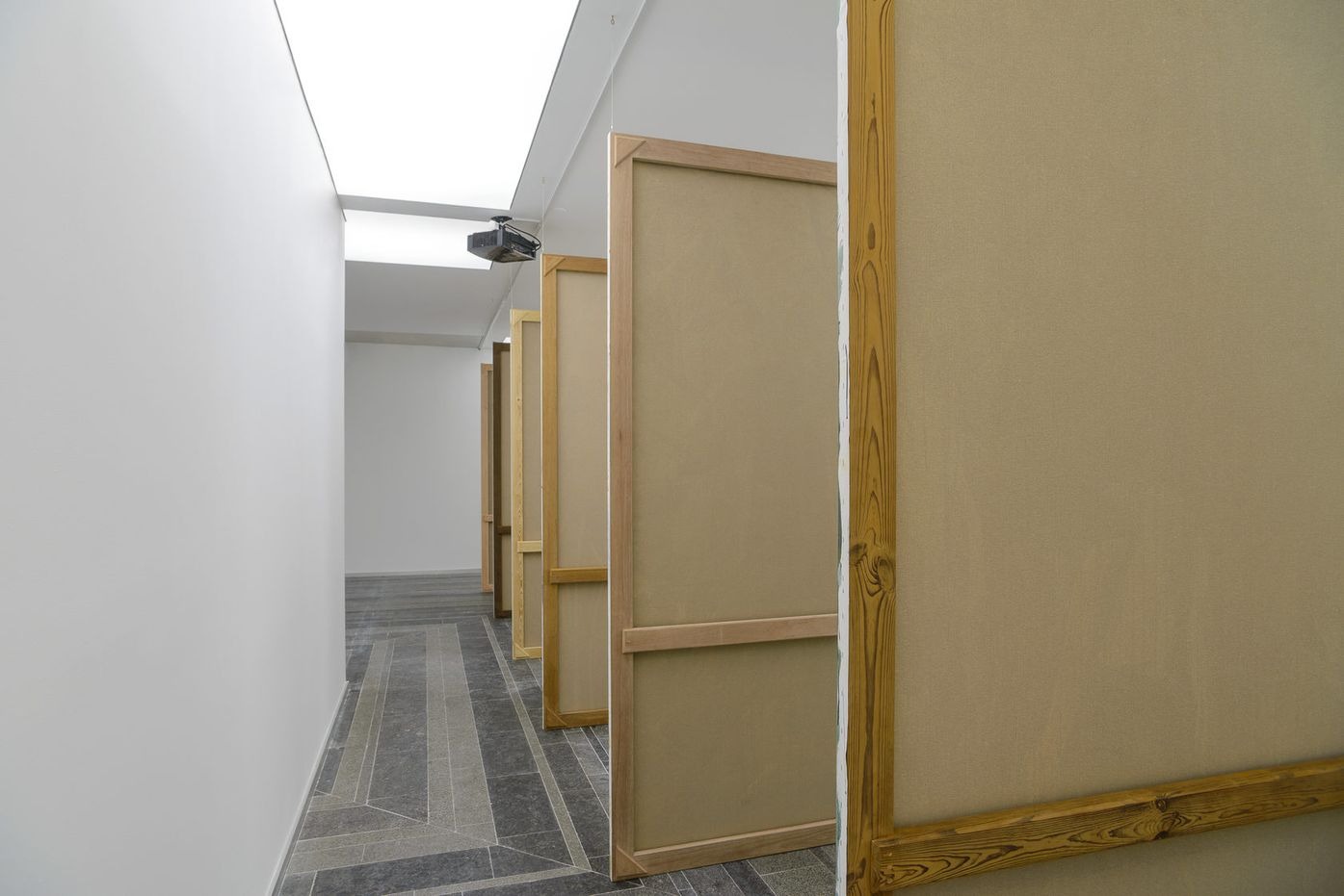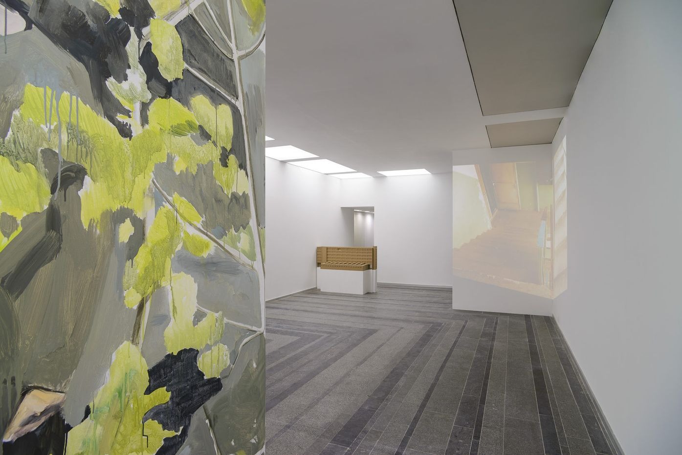 installation: paintings, stretchers, a cardboard mock-up model, video projections and sounds