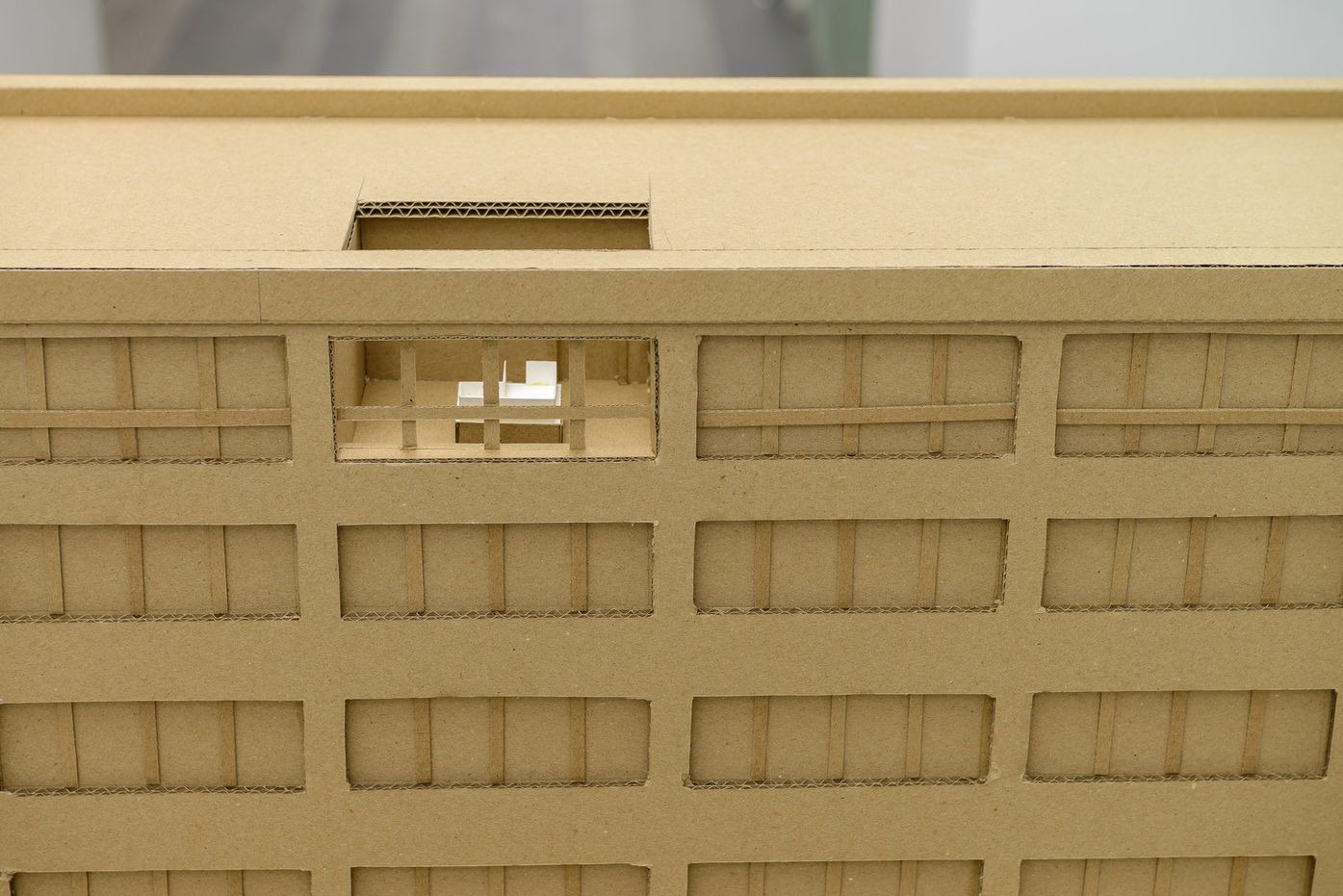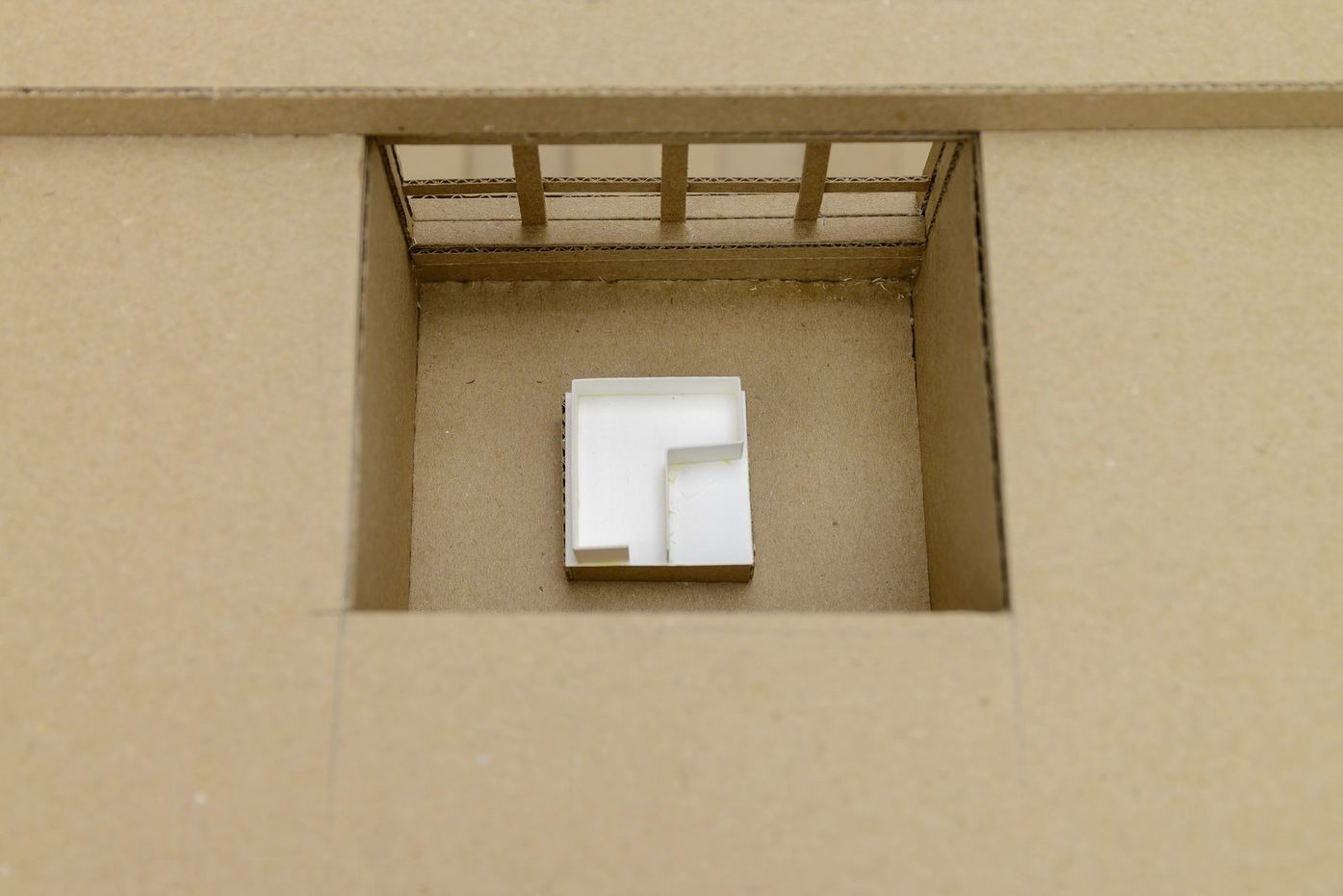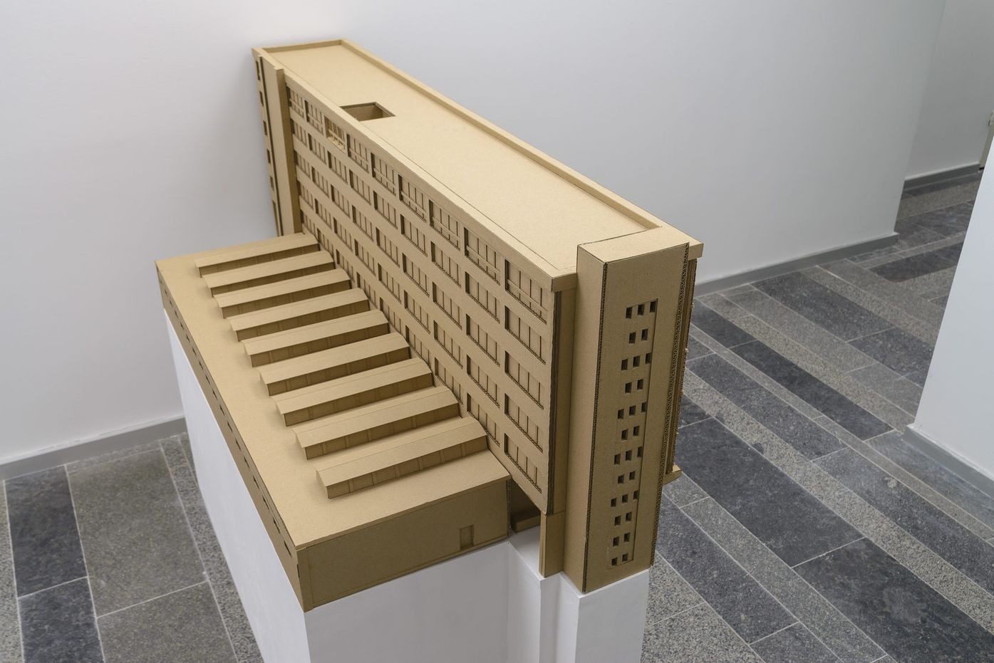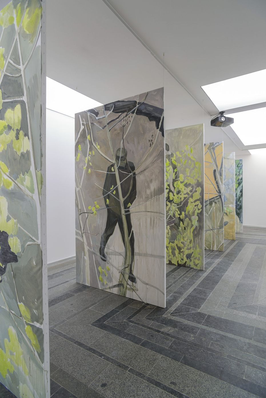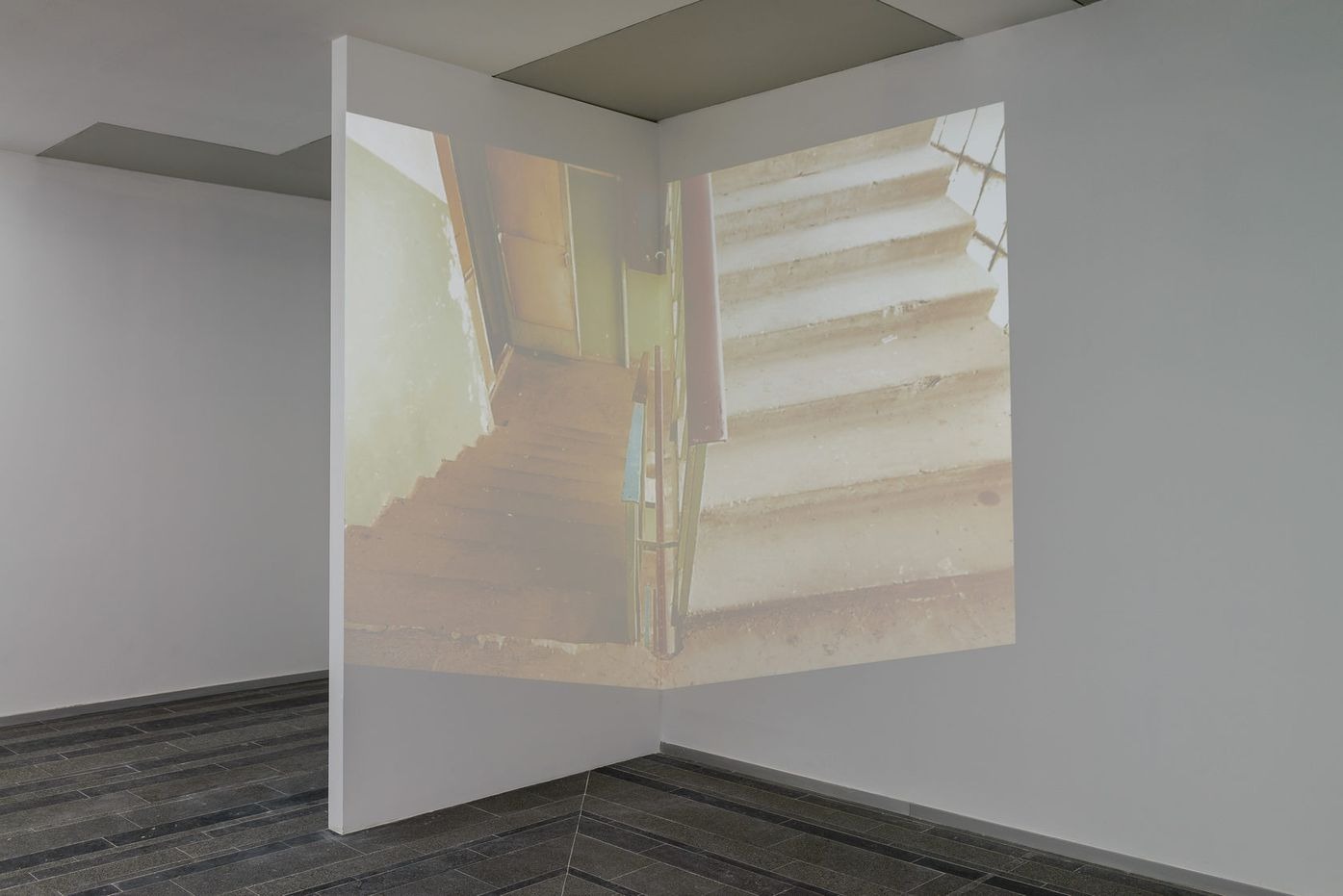 installation: paintings, stretchers, a cardboard mock-up model, video projections and sounds
