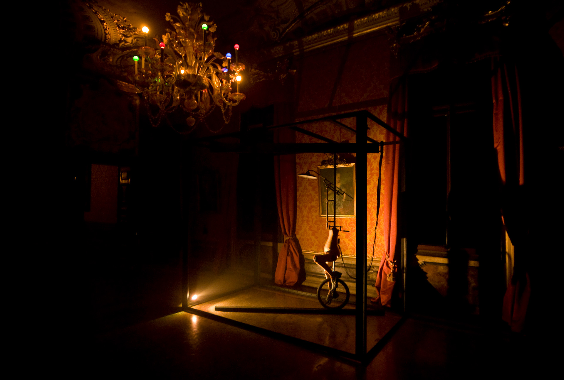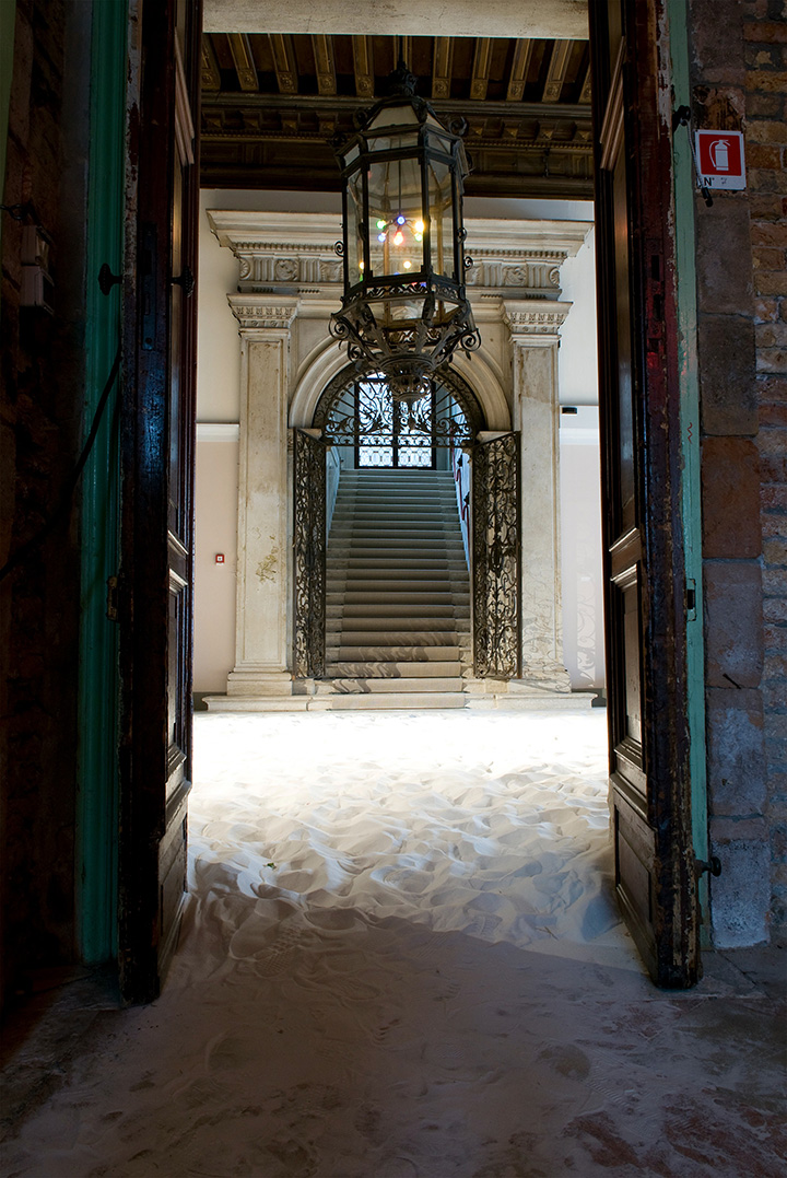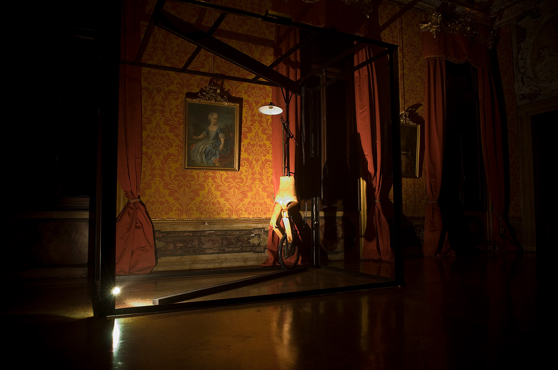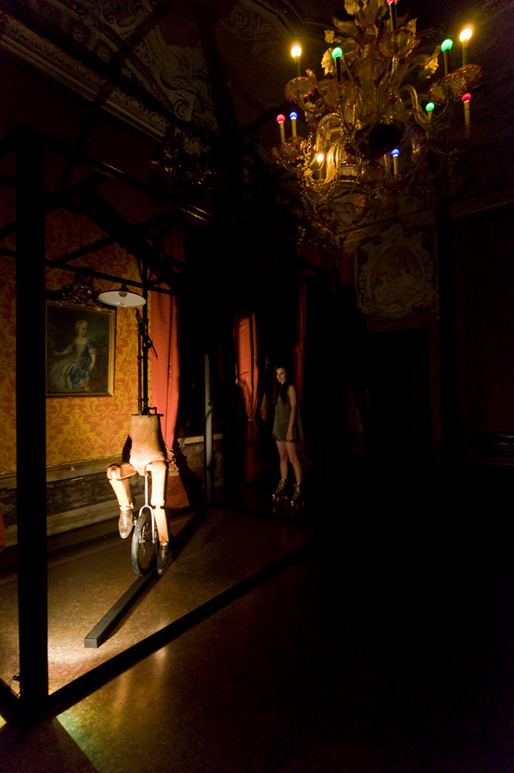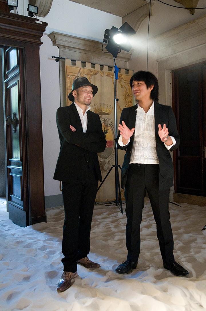 This is the basis for the collaborative effort between Illya Chichkan and Mihara Yasuhiro. Working together in the uncharted boundary where art and fashion meet, they examine the past, present and future of the Eurasian landscape through various cinema metaphors. Their four large-scale art installations include: light, sound, performance, advertising and the Palazzo Papadopoli itself as a film-set. Additionally, two large kinetic works by Mihara Yasuhiro addressing space and movement will also add to the assembly of exhibition. The installations are located inside the palazzo and in front of the Academia Bridge. Both artists demonstrate a single, unique vision regarding travel, identity and consciousness.
