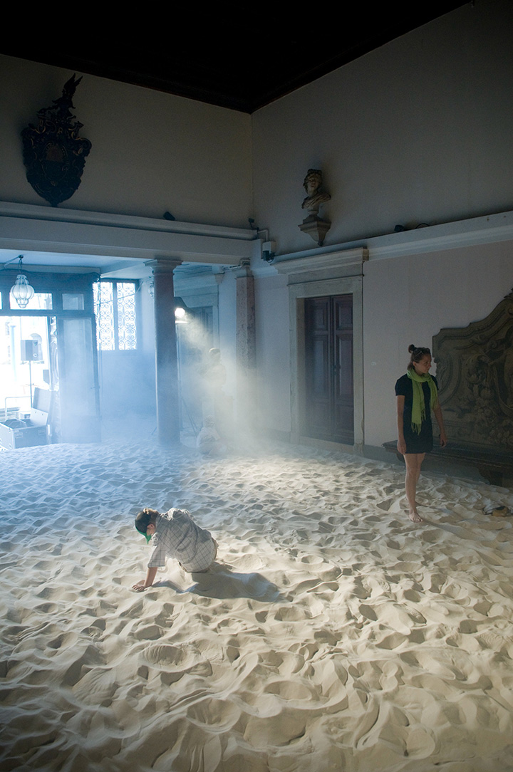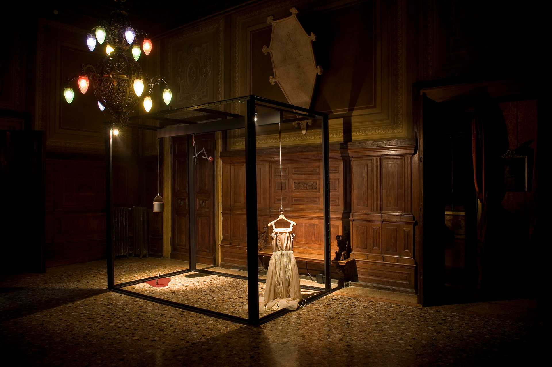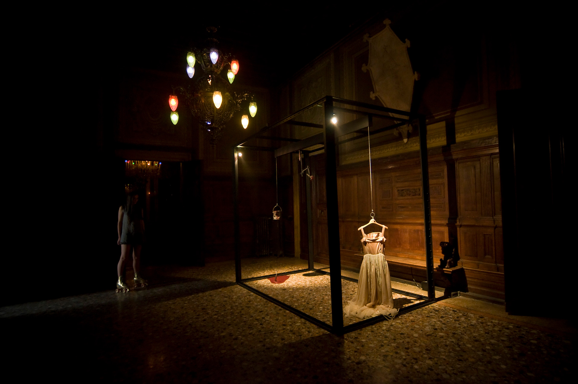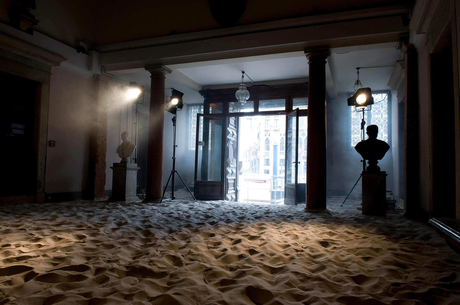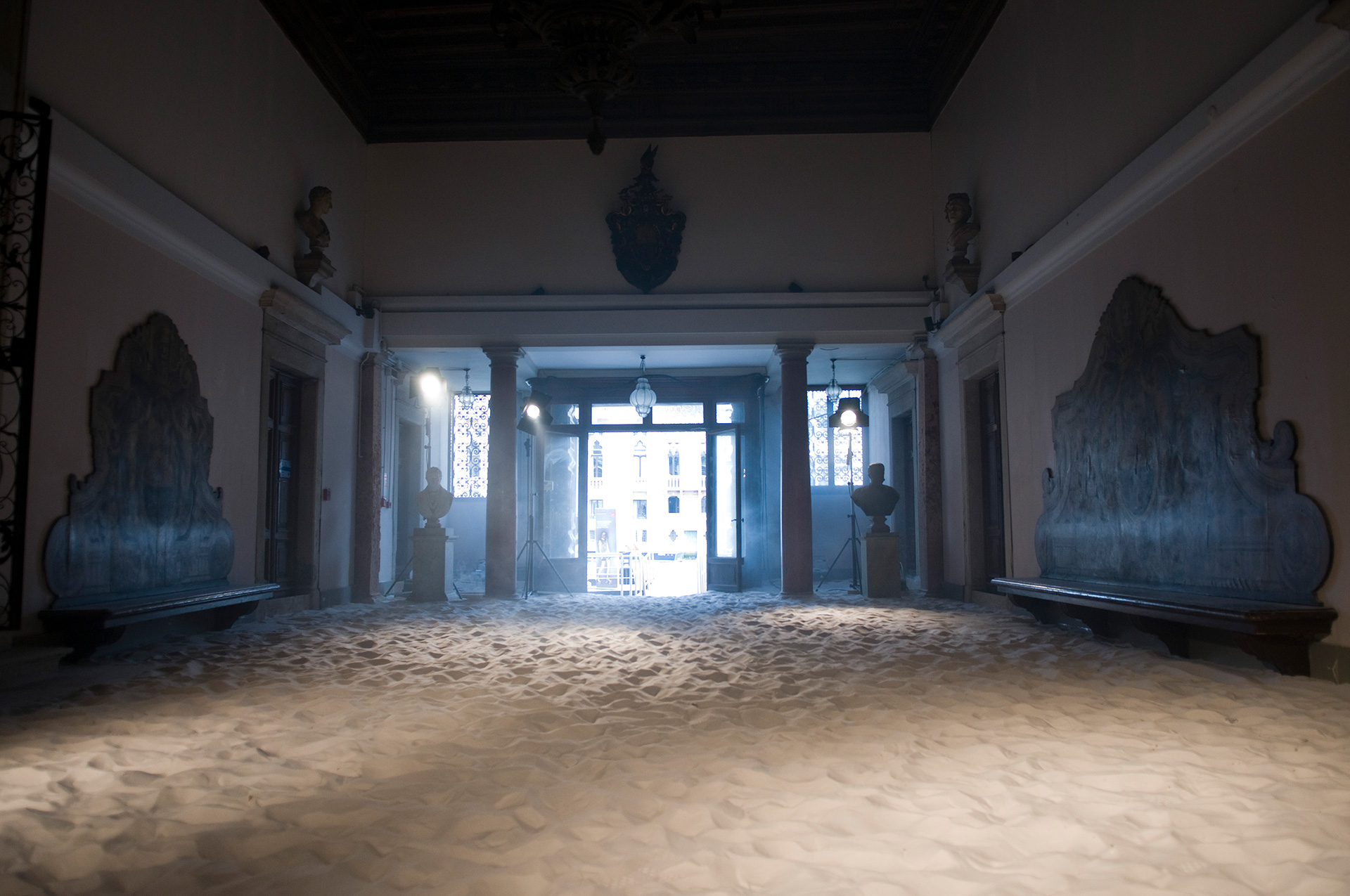 This is the basis for the collaborative effort between Illya Chichkan and Mihara Yasuhiro. Working together in the uncharted boundary where art and fashion meet, they examine the past, present and future of the Eurasian landscape through various cinema metaphors. Their four large-scale art installations include: light, sound, performance, advertising and the Palazzo Papadopoli itself as a film-set. Additionally, two large kinetic works by Mihara Yasuhiro addressing space and movement will also add to the assembly of exhibition. The installations are located inside the palazzo and in front of the Academia Bridge. Both artists demonstrate a single, unique vision regarding travel, identity and consciousness.