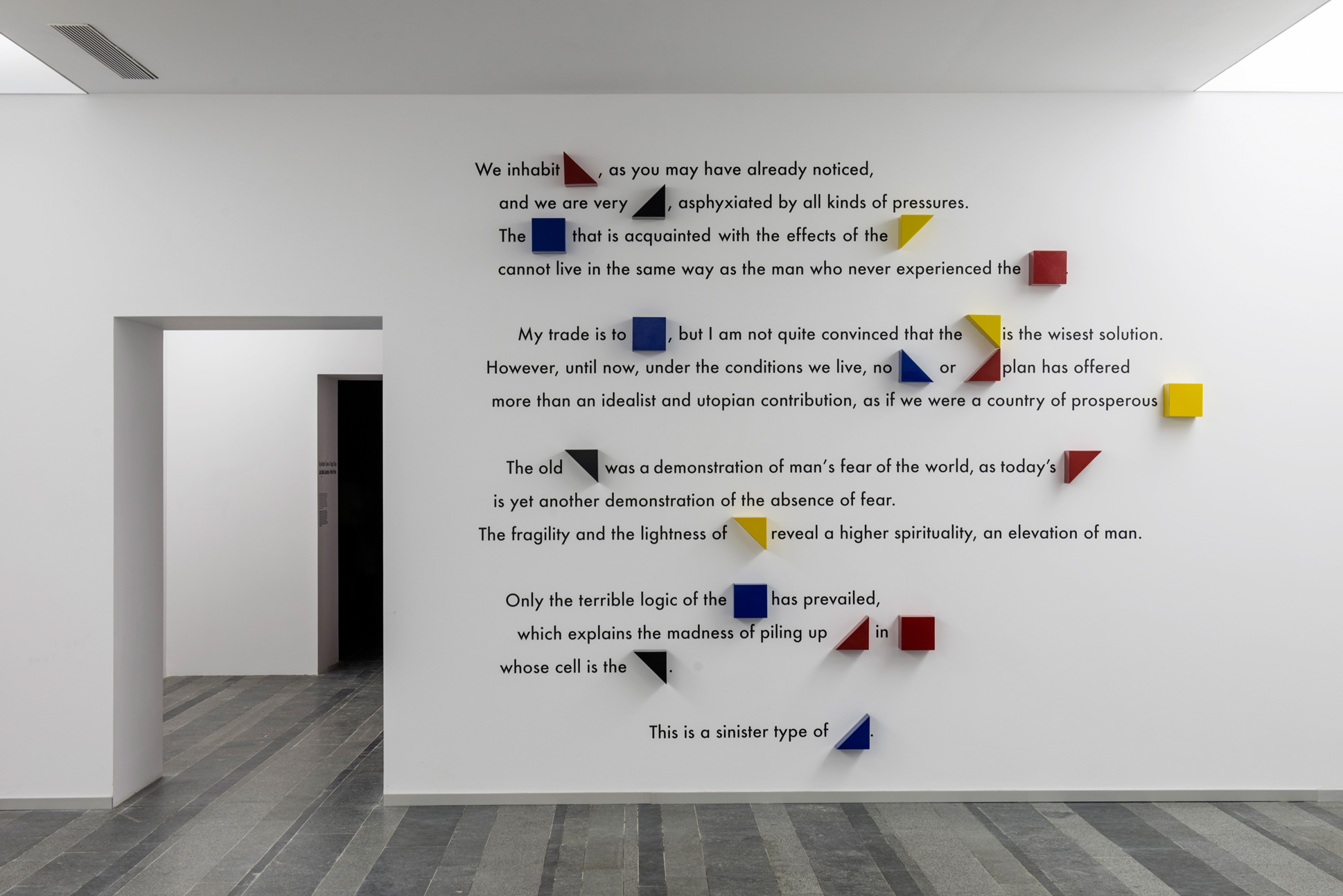 Спираючись на свої дитячі спогади, Табет створив нову інсталяцію для PinchukArtCentre, що складається з поля, сформованого з 4-х тисяч дерев’яних іграшкових блоків, відлитих у бетоні. Робота живиться поетичною напругою між крихкістю будівельних блоків та міццю і надійністю матеріалу. Множинність цього іграшкового набору покликається на особисту пам’ять. З одного боку, йдеться про конструювання вічної руїни, з іншого – про застиглість уяви, схожої на дитячу.