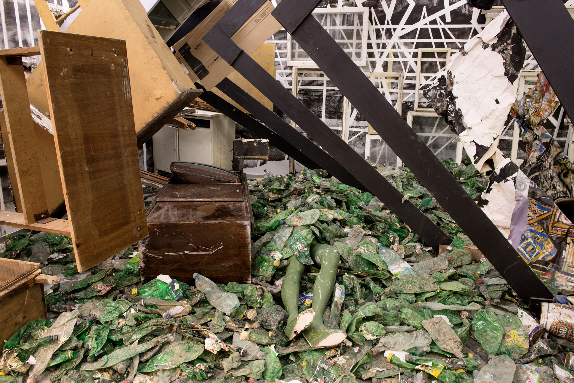 Ебігейл Девілль створює археологічні конструкції, наповнені культурними та історичними алюзіями. Її темні скульптурні інсталяції, занурені у «руйнацію» та «занепад», є рефлексією про соціальні репресії, расову ідентичність та дискримінацію у руйнівному просторі великого міста. Будівельні відходи та сміття з вулиці вона сполучає із знайденими об’єктами та рештками, що залишилися від попередніх поколінь, створюючи з них чорні діри та коловороти, котрі функціонують як метафори викривленого часу. На зовнішніх межах цього сконструйованого занепаду, або через коловороти, глядач зустрічає загублених індивідів, гротескні пародії на те, як чорношкірих колись сприймали в Америці.
