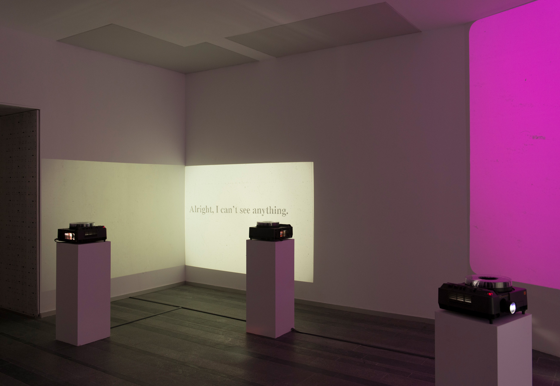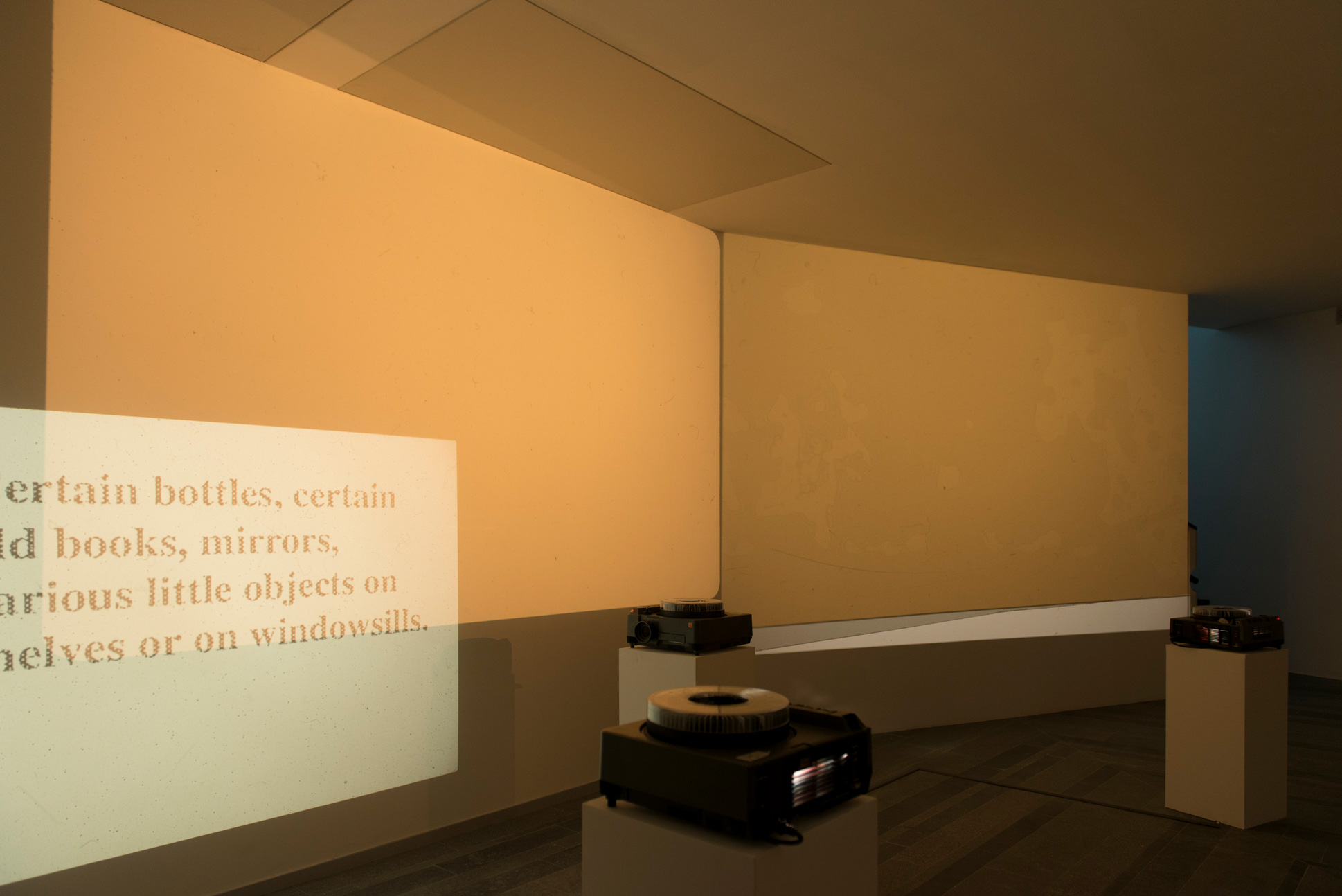 В основі нової інсталяції, створеної Анжіолетті для PinchukArtCentre, лежить проекція, в якій вона збирає різноманітні медійні аспекти свого пошуку, включно з наративом, монтажем, світлом і мовою.