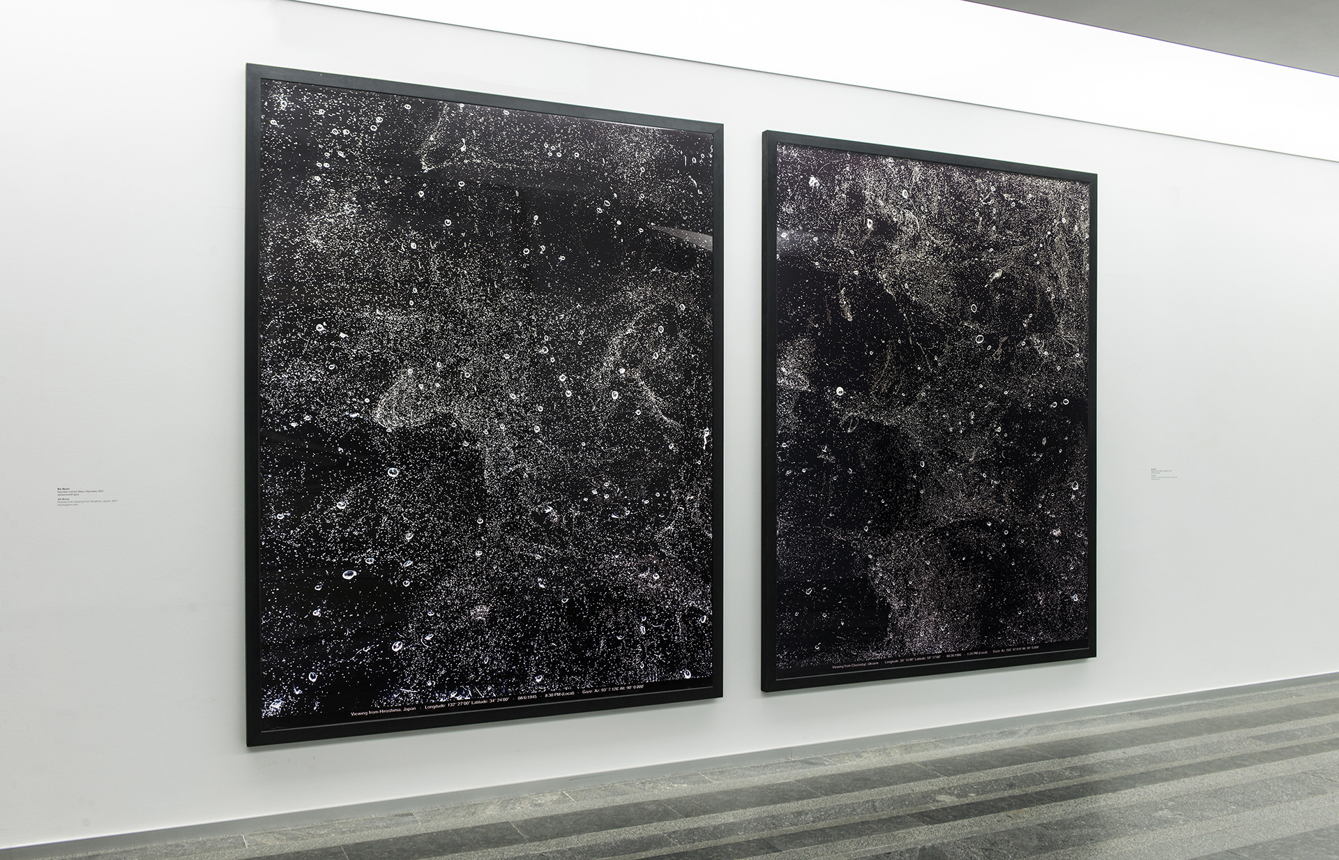 Вік Муніс, Картини повітря, (Вид з Чорнобиля, Україна) 2001, Хромогенний друк, 232 * 180 см; Вік Муніс, Картини повітря, (Вид з Хіросіми, Японія) 2001, Хромогенний друк, 232*180 см