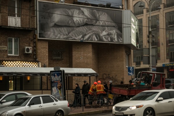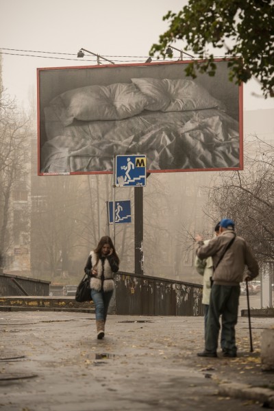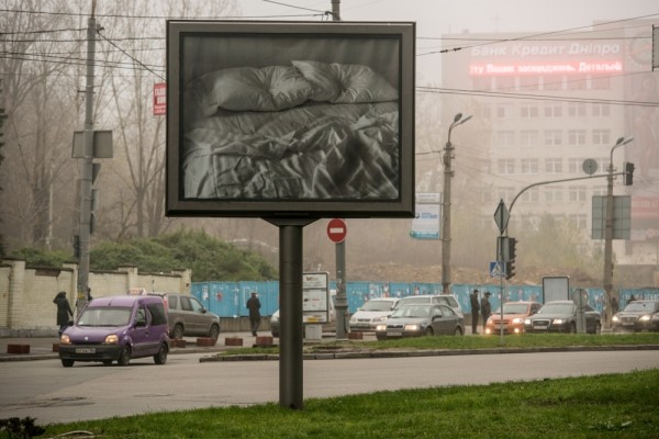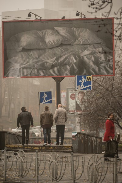 Робота Фелікса Ґонзалеса-Торреса, яка раніше була розміщена на великих рекламних щитах в Нью-Йорку без жодних коментарів чи пояснень, в листопада 2013 року з’явилася на біг-бордах у Києві. Робота представляє собою фото ліжка Ґонзалеса-Торреса із зім’ятими простирадлами і слідами, які залишилися на подушках від двох голів. Говорячи про СНІД як про хворобу, Ґонзалес-Торрес зіставляє приватний та громадський простір, демонструючи, що СНІД вражає особисте життя і зачіпає все суспільство. Водночас постіль – це місце конфлікту, одночасно символ і любові, і ваблячої смерті.