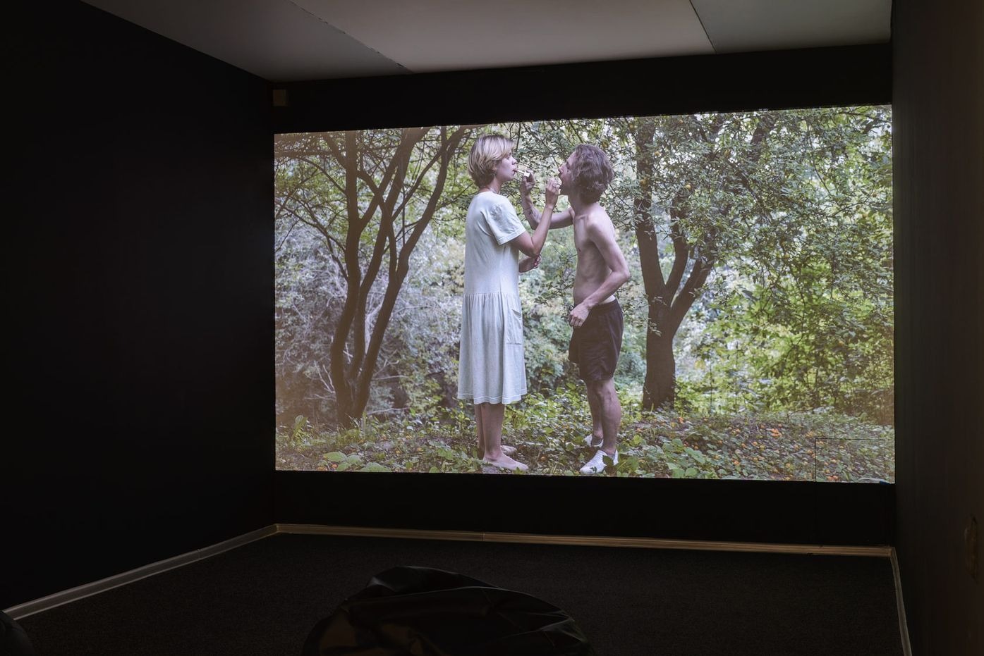 Ключова робота в залі — відео Оксани Казьміної, у якому художниця створює щось на зразок райського саду, дикого, первозданного, де мешкають його герої — Дівчинка і Хлопчик. Граючи й приміряючи на себе різні ролі, як діти, котрі намагаються наслідувати дорослих, вони на інтуїтивно-чуттєвому рівні пізнають світ та вперше випробовують сексуальне. Віршики з дитячого фольклору, що їх проказують герої, дитячі «секретики», закопані в землі, постають чи не першими соціальними конструктами, через які відбувається дорослішання і самопізнання. «Природне», яке перебуває в конфлікті із «соціальним», тут постає як сфера чуттєвого, тілесного, сфера свободи і незаангажованості.