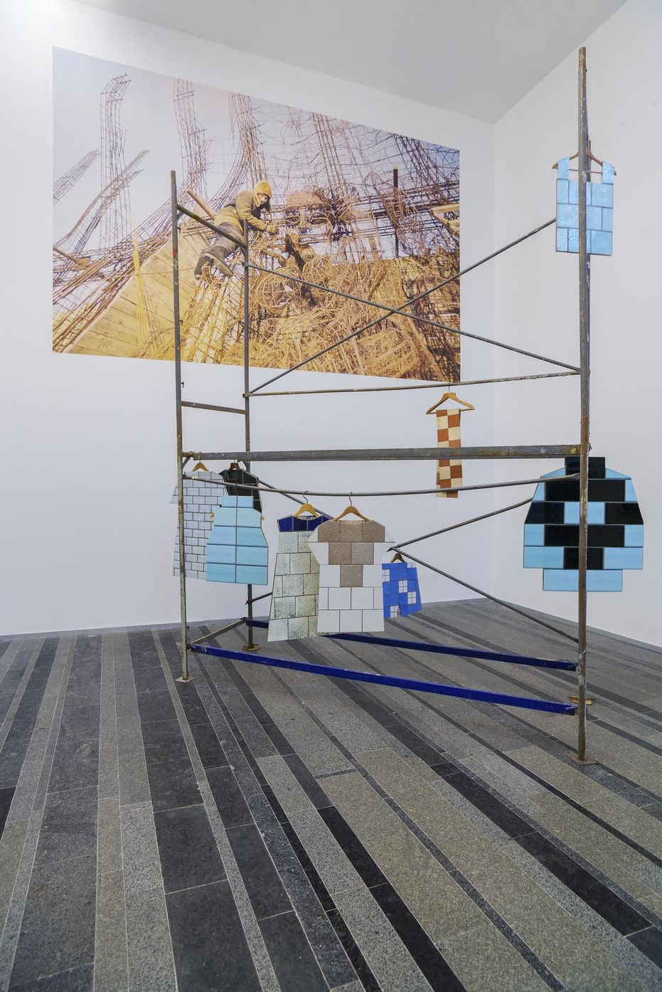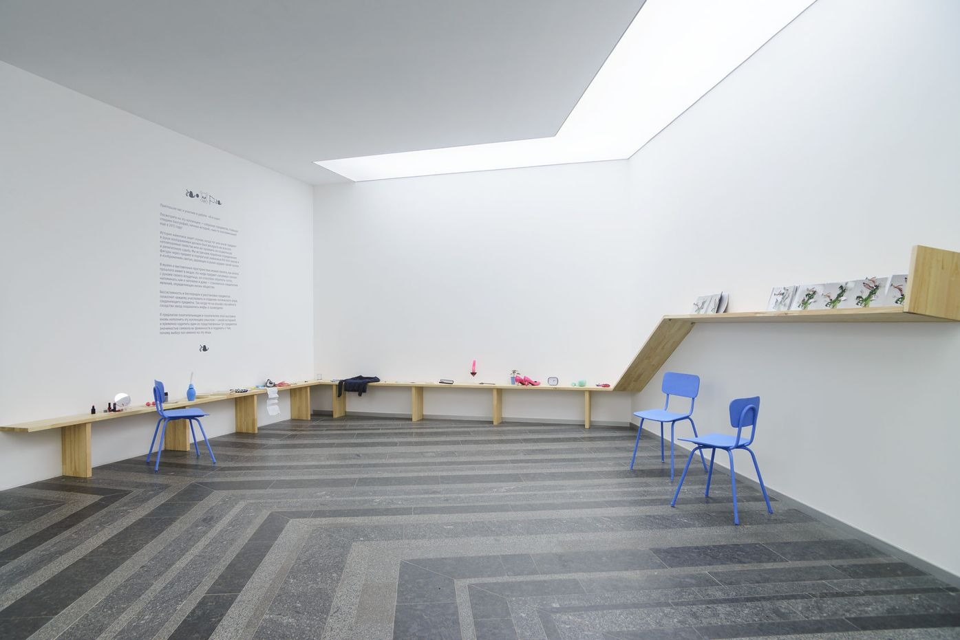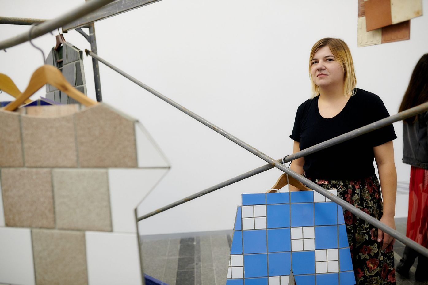 У своїй новій роботі Катерина Єрмолаєва осмислює мистецтво й культуру 1960–1970-х років через моду, коли зовнішня репрезентація і поведінкова модель ставали одним зі способів самовиявлення й утвердження індивідуальності. Художниця розфарбовує простір у кольори тканин, популярних у СРСР часів десталінізації та виникнення перших Будинків мод.