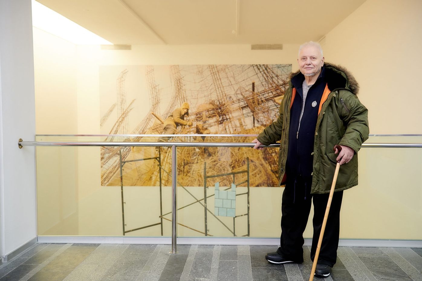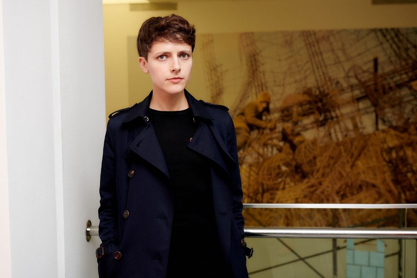 На фотографії зображено художницю Аду Рибачук під час роботи над рельєфами Стіни пам’яті на Байковому кладовищі в Києві. Рибачук власноруч працює над складними об’ємними металевими конструкціями для композиції «Громадянська оборона», присвяченої жінкам у Другій Світовій війні, котрі рили окопи і встановлювали протитанкових «їжаків» у Голосіївському лісі.