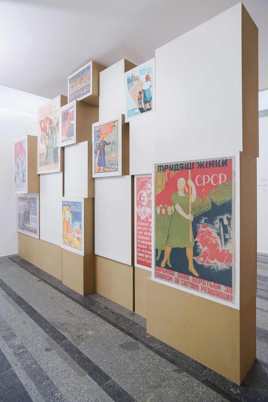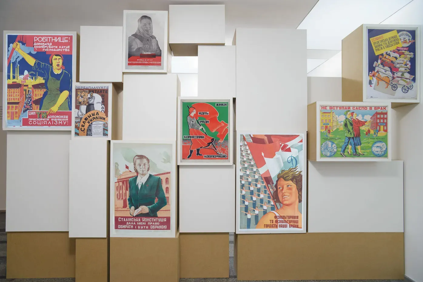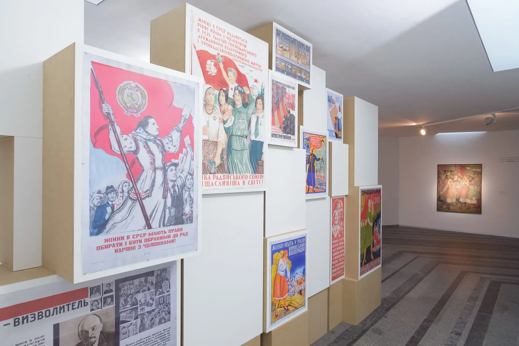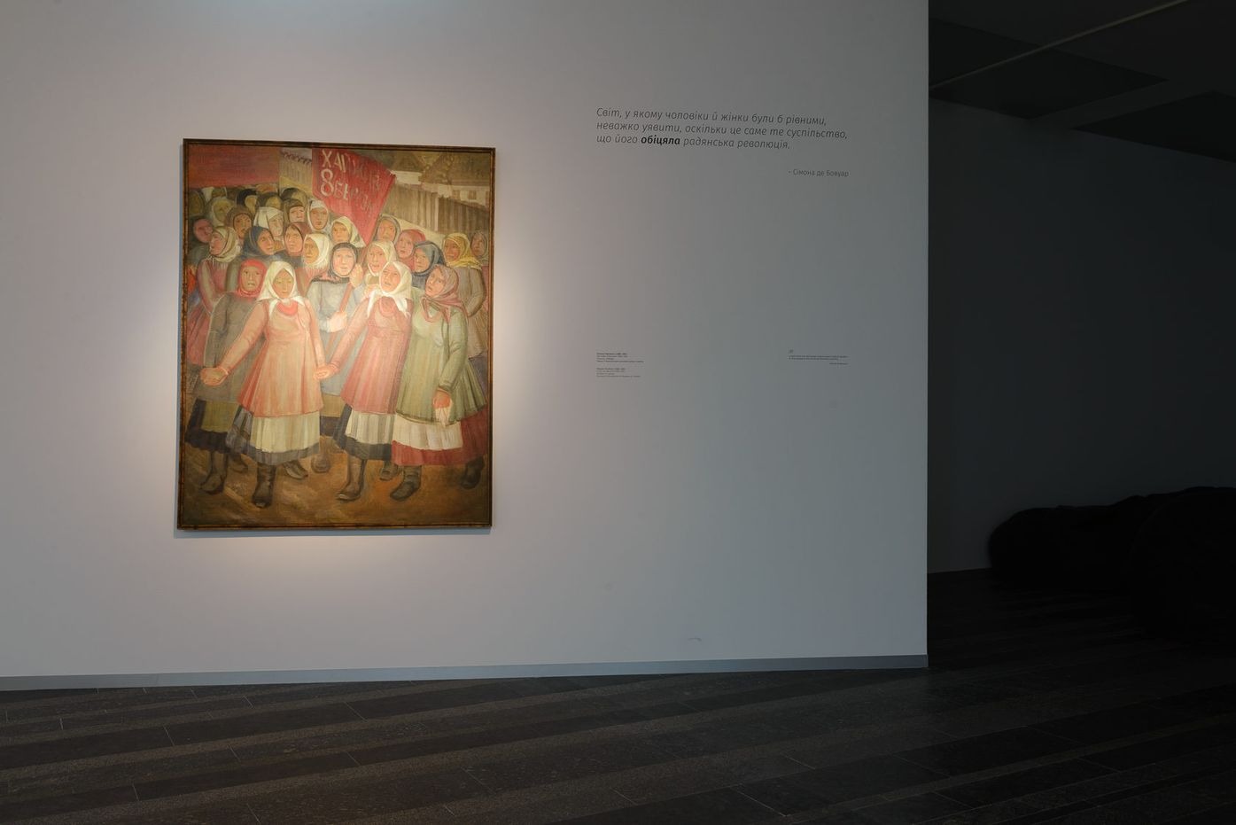 Концептуальне вирішення зали позначилося на трансформації її архітектури, яка задає дві смислові лінії. Першу пов’язано зі святом 8 Березня як утіленням ідеї боротьби за рівність, а друга показує, що ця рівність певною мірою досягалася коштом маскулінізації жінки. Першу лінію розпочинає робота Оксани Павленко «Хай живе 8 березня!», у якій художниця зобразила групу жінок, котрі вийшли на демонстрацію. Нині робота нагадує про політичний заряд цього свята, яке з другої половини ХХ століття перетворилося на декоративне привітання чоловіками жінок. Цю першу лінію посилюють плакати 1920–1940-х років із гаслами й закликами. Більшість плакатів нагадують про першу хвилю фемінізму, яка в Радянському Союзі тривала зовсім недовго і завершилася вже на початку 1930-х. Авангардні за формою, сміливі за змістом плакати 1920-х років демонструють справжню спробу емансипації жінки, тоді як плакати середини 1930–1940-х років тільки експлуатують і імітують колишні заклики до рівності. Це виразилося і в художній формі: плакати стають сірими, шаблонними, безóбразними. Поєднані в одній інсталяції вони перетворюються на символічну «руїну історії», оприявнюють людську властивість забувати.