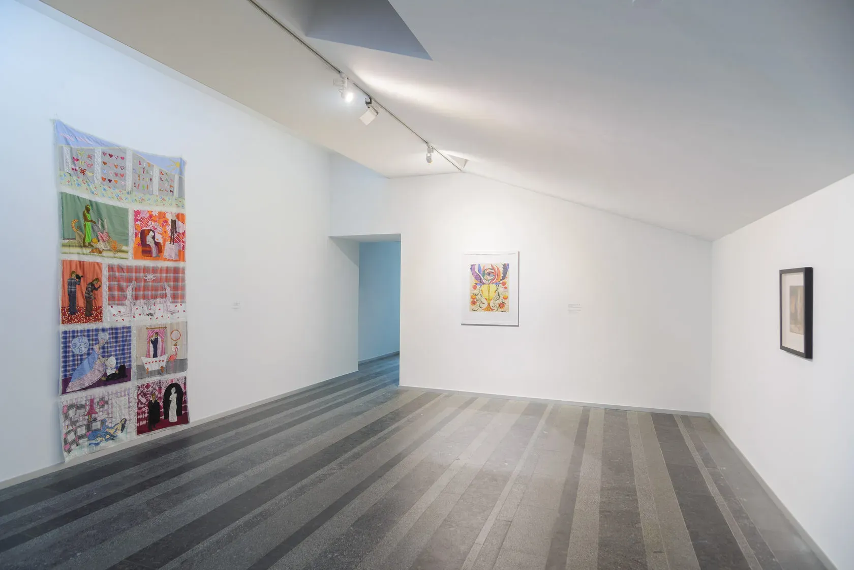Аліна Копиця у своїй художній практиці усвідомлено використовує текстиль як «типовий» жіночий матеріал, але насичує його відвертими еротичними змістами, проблематизуючи позицію жінки в сучасному суспільстві. Її нова робота фізично розділяє дві кімнати і позначає розділ виставки, присвячений інтимності. Робота постає як метафора потаємного особистого світу і водночас як перешкода на шляху глядача, приховуючи й захищаючи. Зібрані в одному просторі всі ці твори втілюють «перехрестя» різних «кімнат»: її відсутності (Білокур, Примаченко), непевності і самокатування (Жаркова, Клейтман), комфорту (Скугарєва).