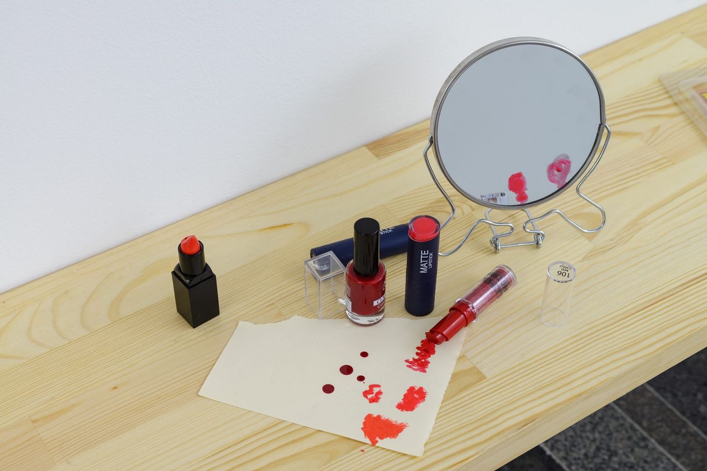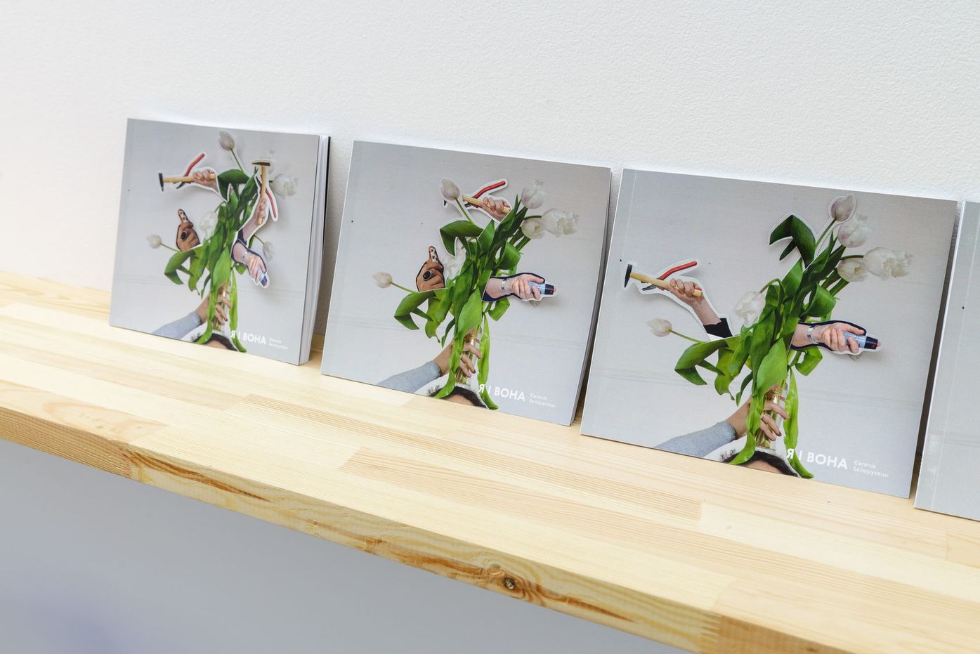 Інсталяція Євгенії Бєлорусець «Я і вона» — авторське переосмислення роботи, яку художниця створила в рамках проекту «Жіночий цех», організованого незалежною групою «Феміністична офензива», що відбувся 2012 року в Центрі візуальної культури. Тоді Бєлорусець запропонувала учасникам вибрати будь-який предмет, який відповідав би їхній особистій фемінній ідентичності, і замислитись над своїм вибором — яке він має значення. Результатом роботи стала «колекція» фотографій із зображенням учасниць і учасників та їхні «голоси» у формі супровідних текстів. Проект зафіксував ситуацію існування спільноти, яка давала підтримку і можливість вільно проговорювати табуйовані суспільством теми.