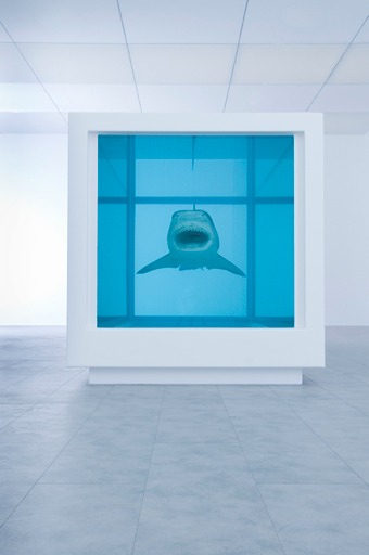 Заперечення смерті, 2008. Скло, сталь, акула, акрил та розчин формальдегіду
