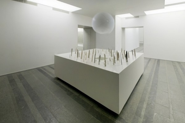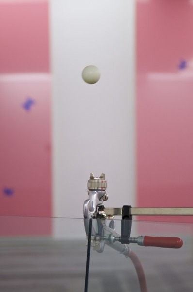 Історія болю, 1999. ДВП основа, ножі з нержавіючої сталі, повітряний компресор та пляжний м’яч