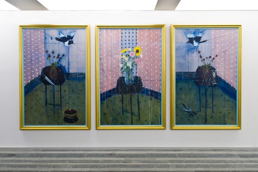 Прекрасна Олена Образ орхідеї, 2007. Полотно, побутова фарба. Шість прекрасних місяців, 2008. Полотно, побутова фарба, метелики