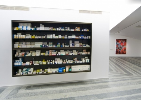 Де є бажання, там є можливість, 2007. Нержавіюча сталь, скло, фарбована резина, штукатурка, металеві зліпки пігулок