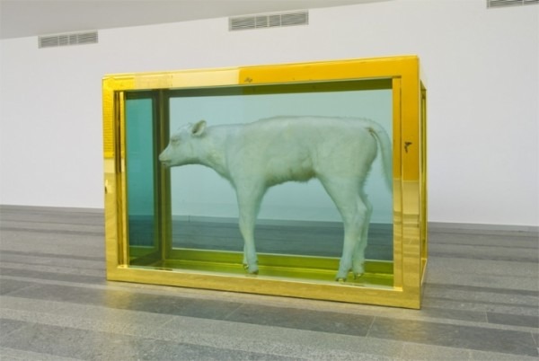 Фальшивий ідол, 2008 теля, золото, скло, позолочена сталь і розчин формальдегіду