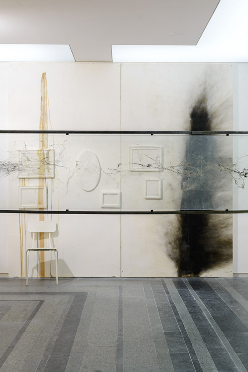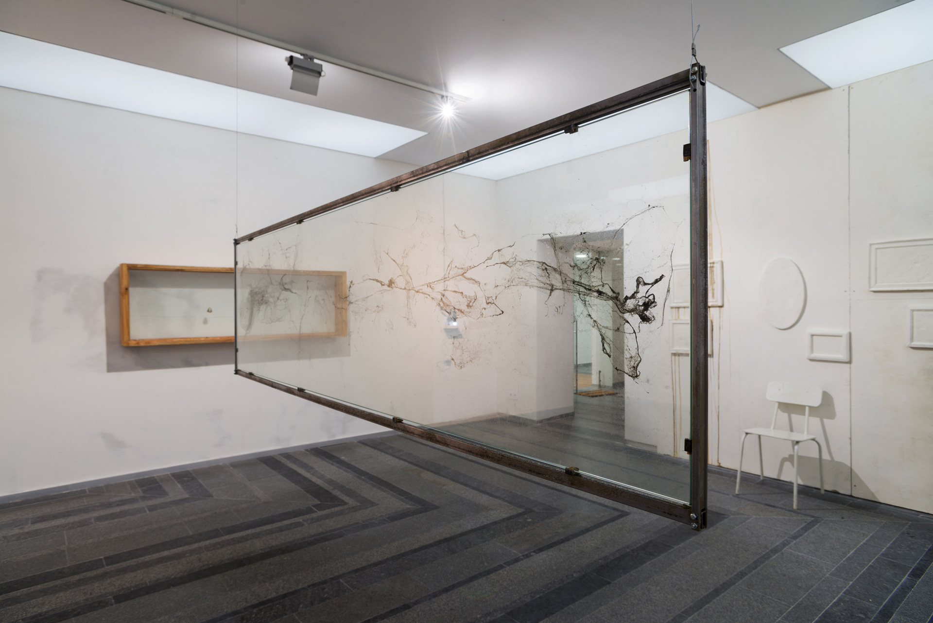 У своїх роботах Анна Звягінцева часто акцентує увагу на невловимих непомітних моментах з нашого повсякдення. В експозиції представлено три роботи, поєднані ідеєю автоматичного письма. Колективний рисунок, що з часом утворюється від несвідомої колективної дії (сліди, що залишаються від доторків до поручнів, погашених недокурків на стіні тощо), приваблює художницю як колективний твір мистецтва та водночас здатністю до вираження за відсутності використання будь-якого медіа. У мистецькій практиці Звягінцевої загалом рисунок посідає одне із центральних місць, вона піддає його трансформаціям, використовуючи різні матеріали та виводить його із двомірної площини до просторових об’ємних об’єктів. Повторюваність одноманітних дій, розтягнених у часі, сприяє постійному зміненню твору. Так, в експозиції біла площина, що слугує «основою» для об’ємного графітного рисунку, постійно трансформується – стирається, забруднюється, змінює фактуру поверхні безпосередньо за участі глядача.