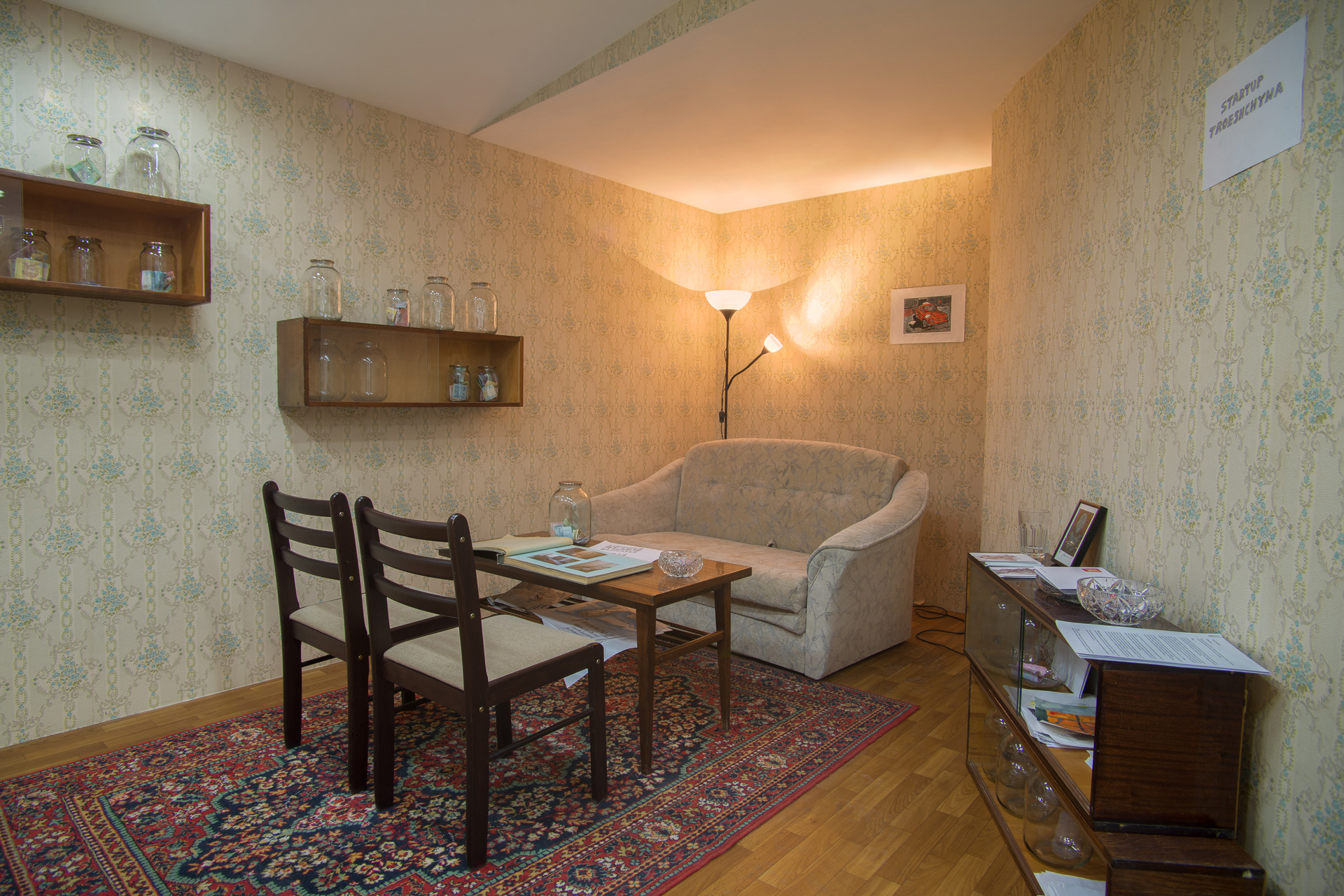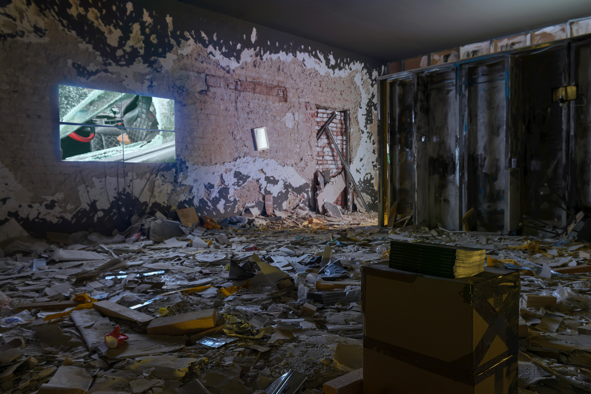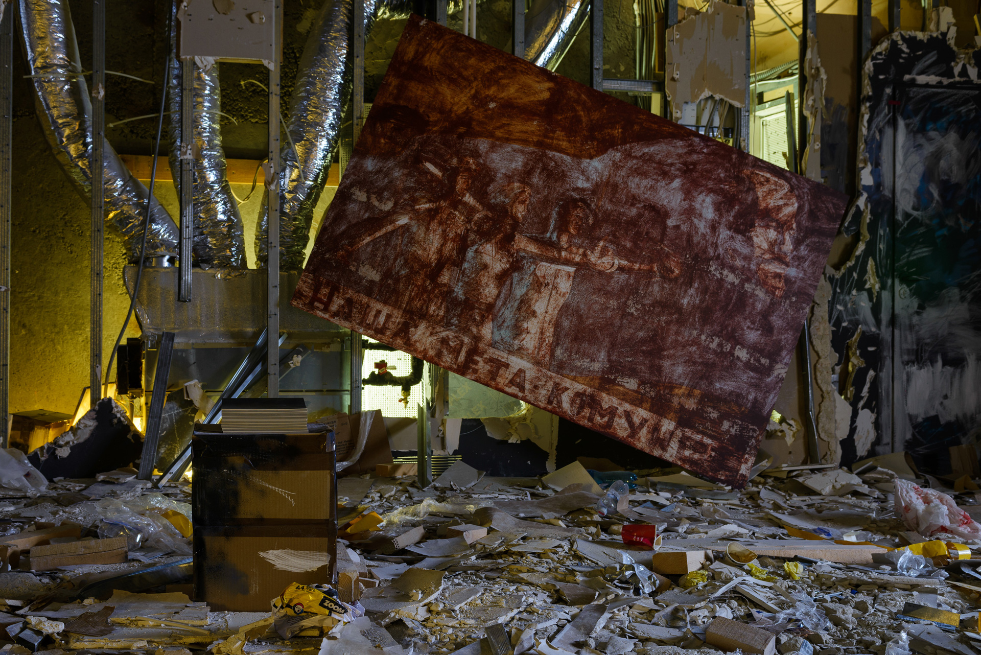 Так, у залі представлено серію фотографій «12 місяців», яка складається з 12-ти робіт, що відображають щомісячну хронологію втрат українських військових на сході України впродовж 2017 року. В експозиції її поєднано з фотографією знищеного пано «Наша мета — комунізм» на стіні загальноосвітньої школи в селі Володькова Дівиця (раніше — Червоні Партизани) на Чернігівщині, 4-х канальним відеоколажем «Надзвичайний стан», утвореного зі знайдених та авторських відео, та закільцьованим відео «Мені більше не сняться сни».