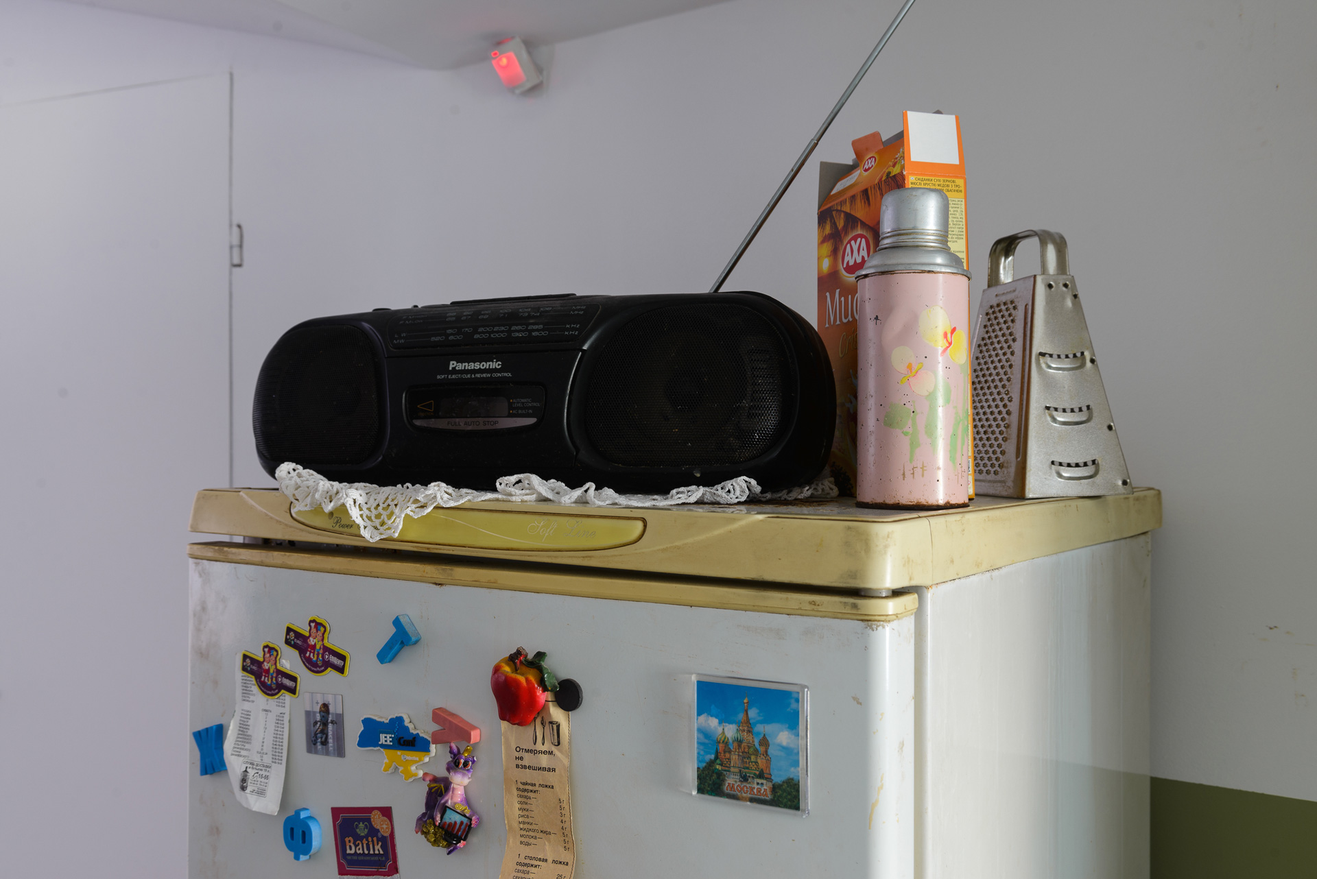 Художниця поміщає родину у кухню – місце, яке з радянських часів уособлювало простір приватної непідцензурної бесіди. У цій роботі Голуб демонструє вплив медіа на звичайну родину, але у сьогоднішній ситуації безперервного інформаційного потоку, коли споживання медіа доводиться до абсурду. Вільний доступ до інформації не гарантує її правдивості, а реакції на неї не виходять за межі особистого простору.