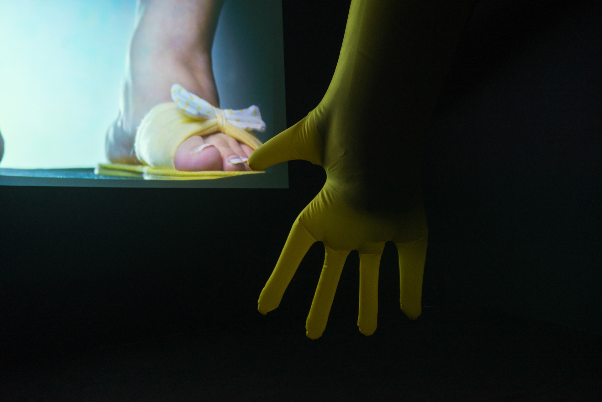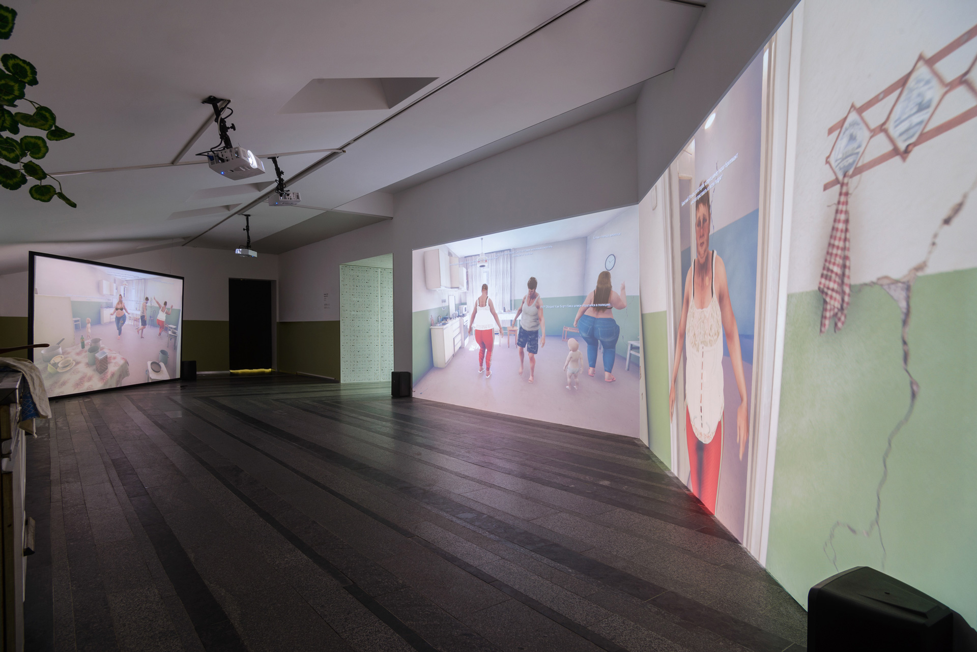 У своїй роботі «Запитай у мами» Аліна Клейтман звертається до дитячих страхів, фобій та переживань. Художниця занурює глядача у ситуацію саспенсу, коли він змушений пройти лабіринти почуттів: від страху до докору. У численних відеопроекціях Клейтман монументалізує частини тіла та підкреслює жести, які несуть у собі вказівний, менторський та пригнічуючий характер, та пропонує глядачу наново пройти кола пекла дитячих страхів та спогадів.