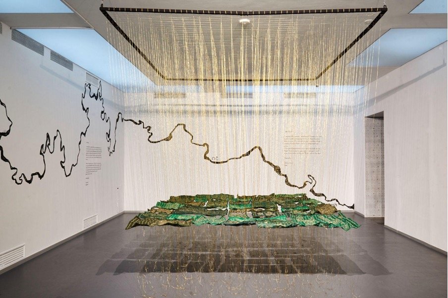 «Інсталяція Гіри Набі, що складається з плину тканин, відеопроекцій та звукового супроводу, є важливим внеском у мистецькі практики, які звертаються до деколоніальної екології. Інсталяція використовує фрагментацію як методологію — що візуальну, то й звукову — запрошуючи нас замислитися над численними тріщинами та уламками, які з’являються внаслідок постійного руйнування довкілля. Ця робота поетично нагадує нам, що багато конфліктів, які ми переживаємо сьогодні, пов’язані з екстрактивістськими практиками щодо нашого довкілля».