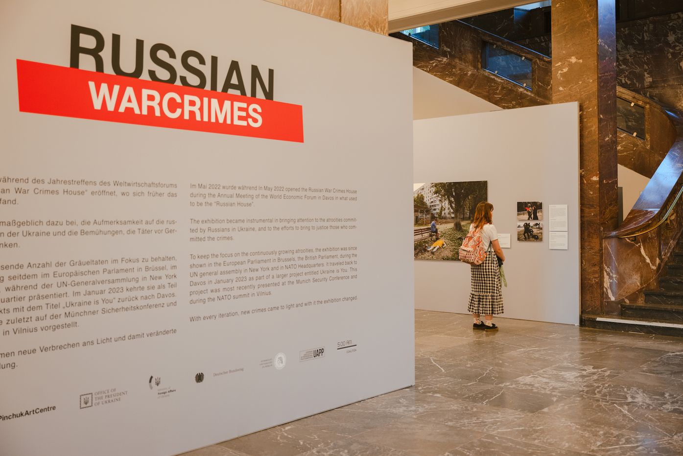 4 вересня Фонд Віктора Пінчука та PinchukArtCentre у партнерстві з Офісом Президента України, Міністерством закордонних справ України, Німецьким Бундестагом та Берлінським університетом імені Гумбольдта відкрили виставку Russian War Crimes / російські воєнні злочини у Берліні. Проєкт демонструє фотографії, зроблені по всій Україні з початку жорстокого повномасштабного вторгнення росії в Україну 24 лютого 2022 року. Попри це, він стосується лише частини скоєних злочинів. Експозиція дозволяє західній аудиторії стати свідками тортур, страт та бомбардувань, вчинених росіянами проти українських військовослужбовців і цивільного населення.
